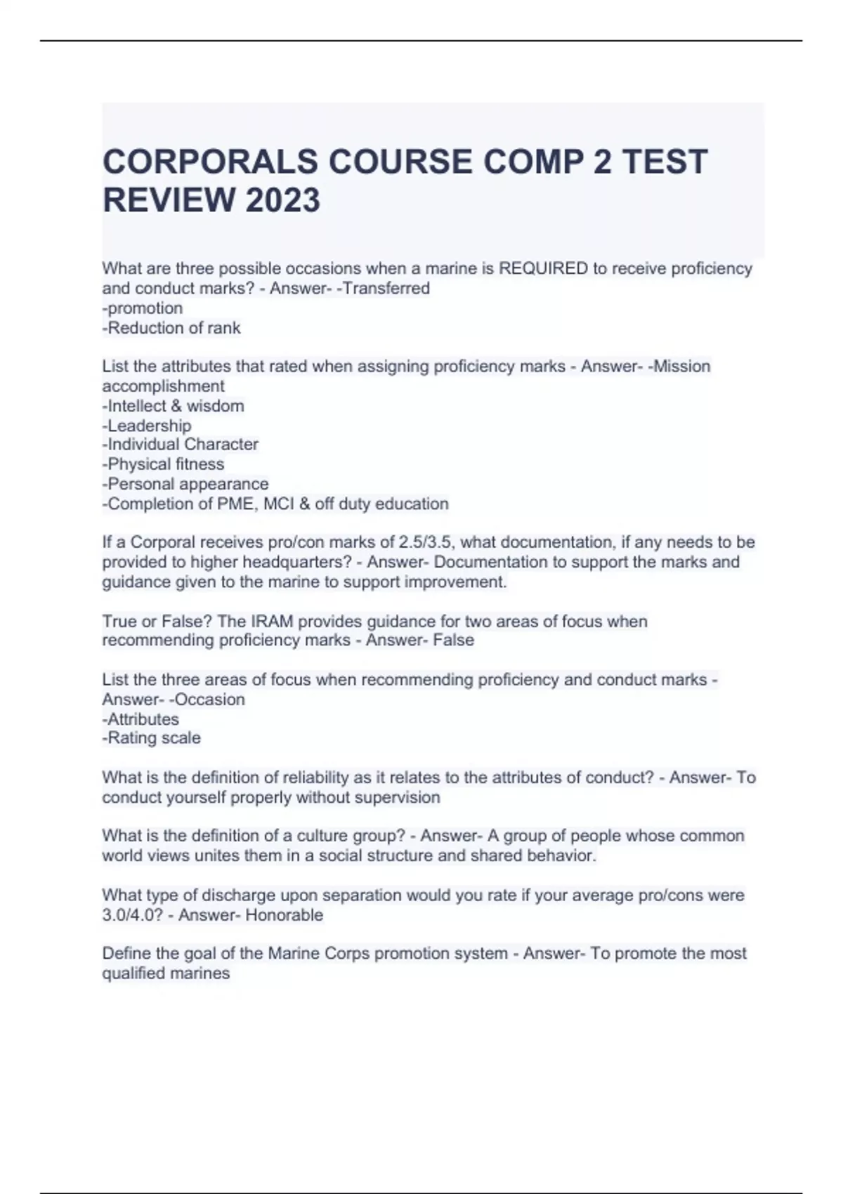 CORPORALS COURSE COMP 2 TEST REVIEW 2023