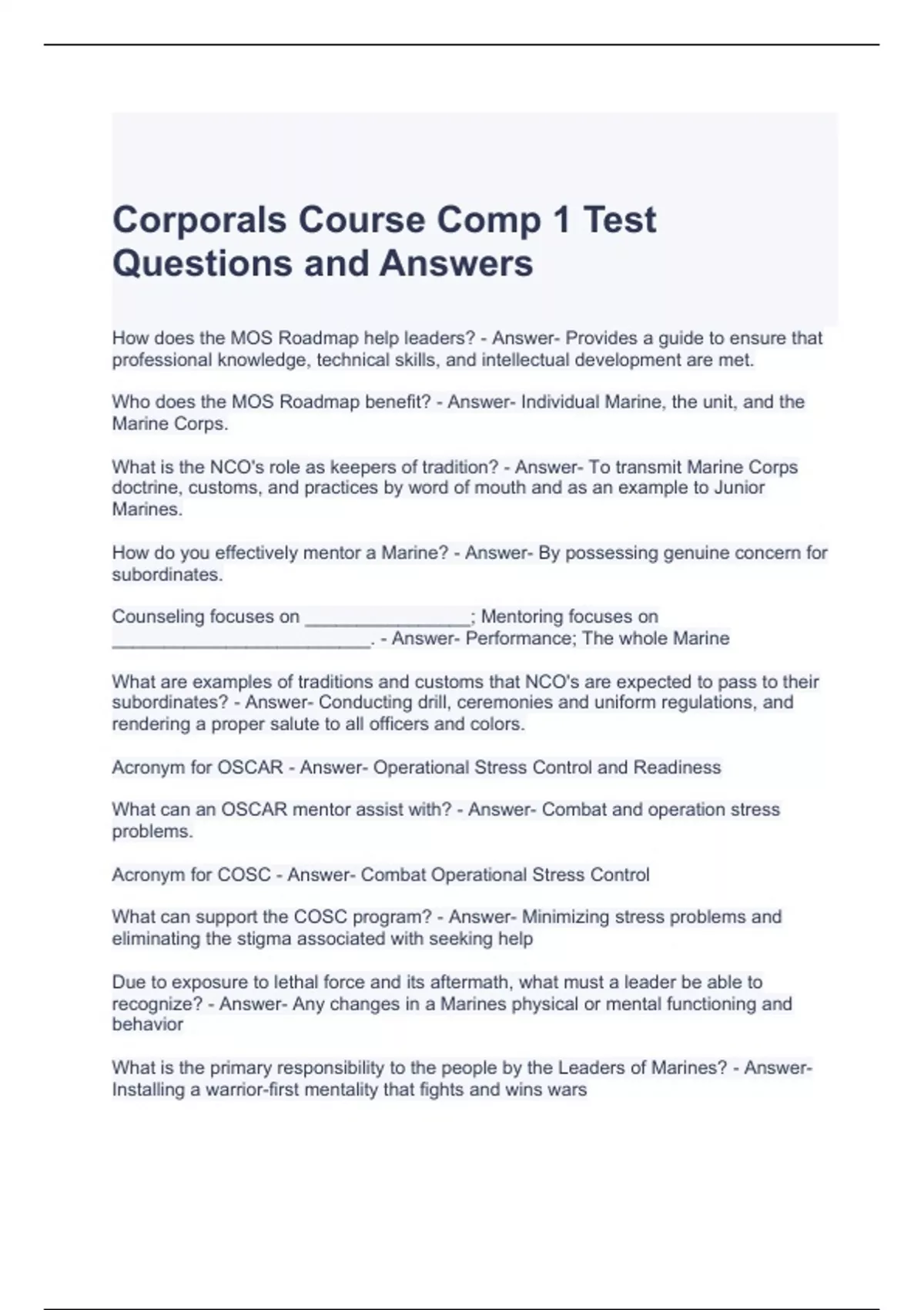 corporals course comp 1 test questions and answers