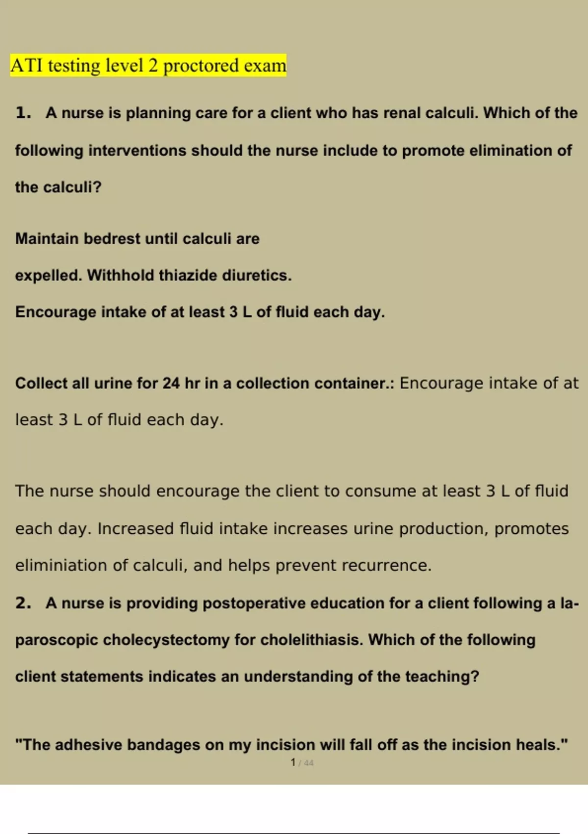 ATI testing level 2 proctored exam COMPLETE 2023/2024 UPDATED