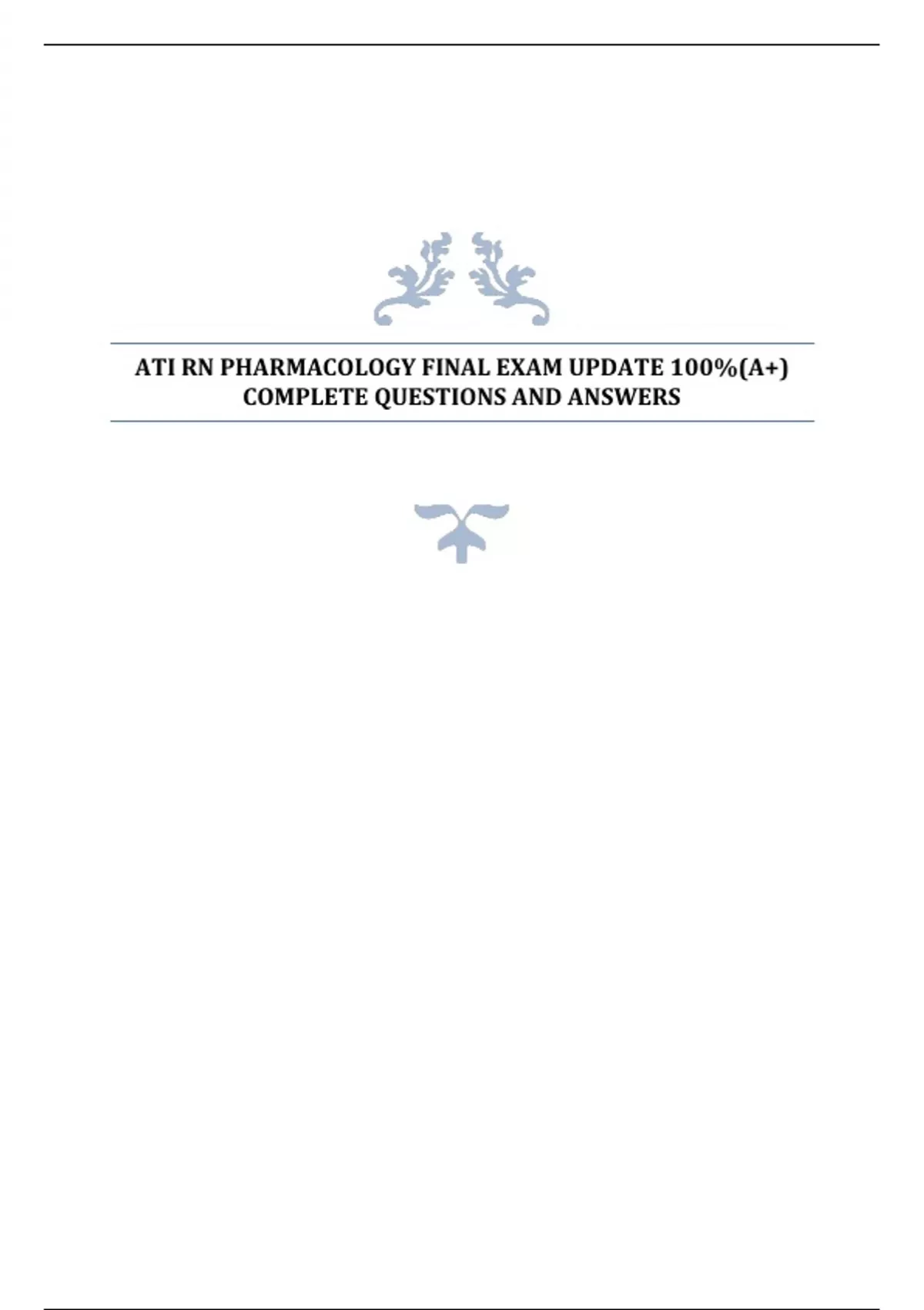 ATI RN PHARMACOLOGY FINAL EXAM UPDATE 100%(A+) COMPLETE QUESTIONS AND ANSWERS
