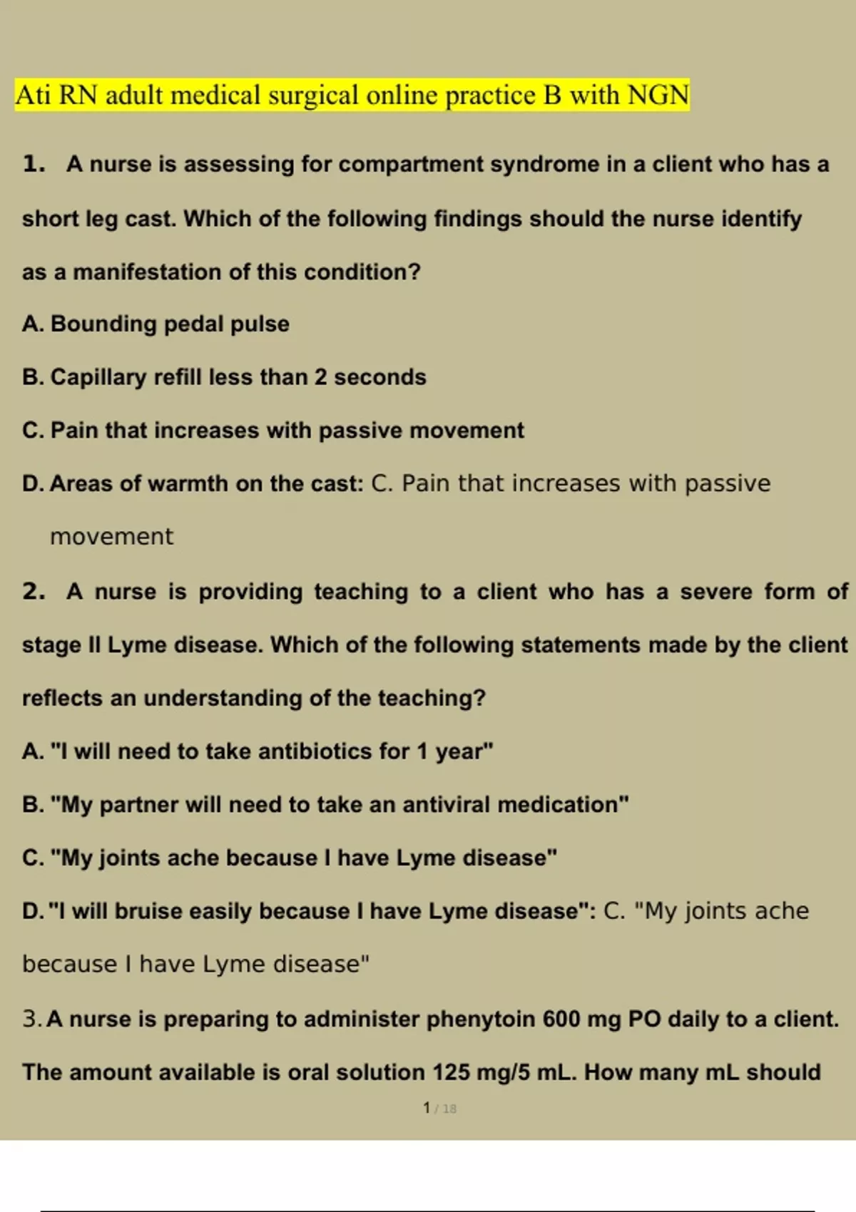 ATI RN Adult Medical Surgical Online Practice 2019 B / RN ATI Adult Medical Surgical Online Practice 2019 B LATEST UPDATE