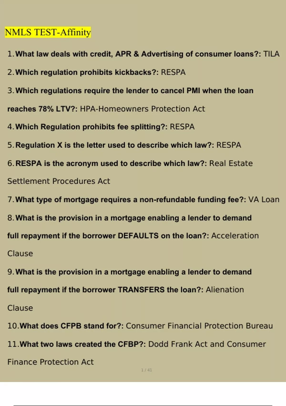 NMLS SAFE TEST-Affinity Questions and Answers Latest (2023 / 2024) (Verified Answers)