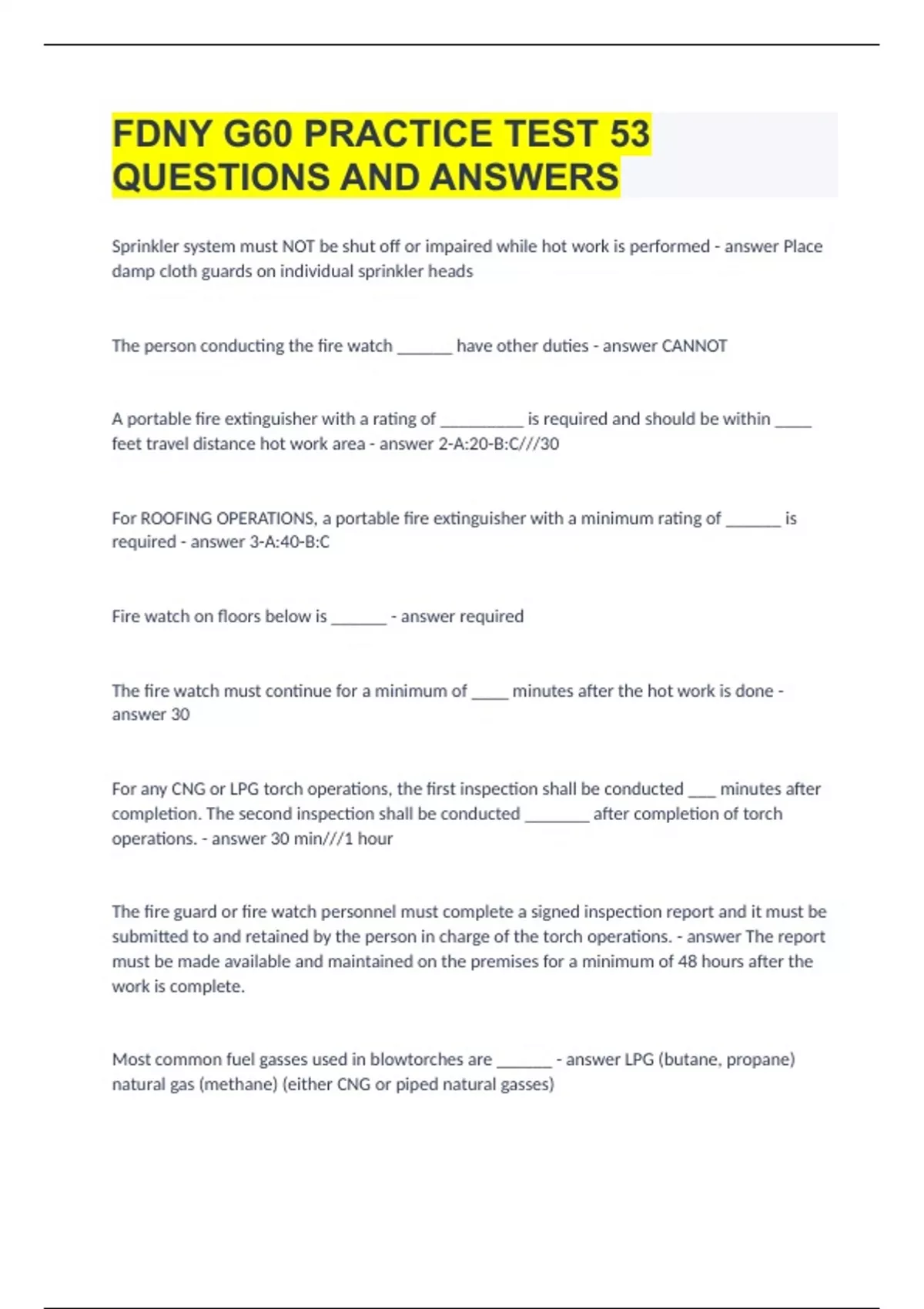 FDNY G60 PRACTICE TEST |53 QUESTIONS AND ANSWERS|GUARANTEED SUCCESS