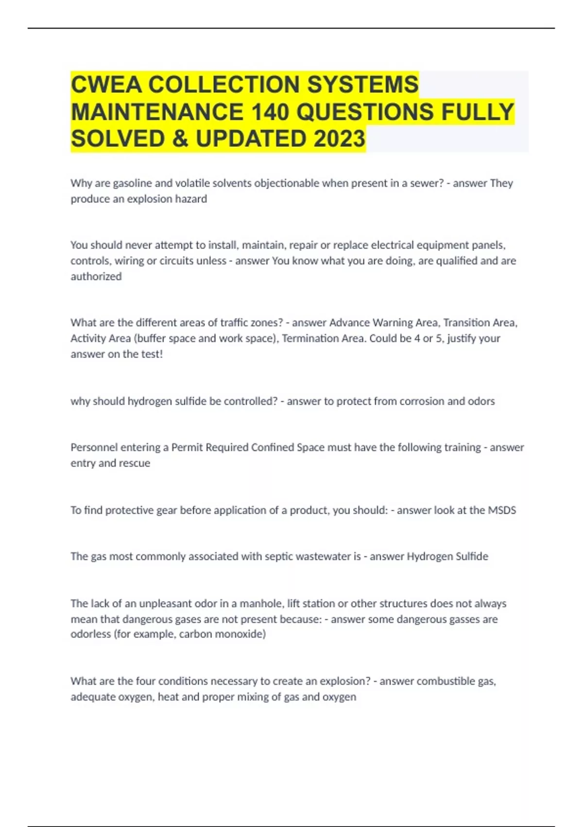 CWEA COLLECTION SYSTEMS MAINTENANCE |140 QUESTIONS FULLY SOLVED & UPDATED 2023|GUARANTEED SUCCESS