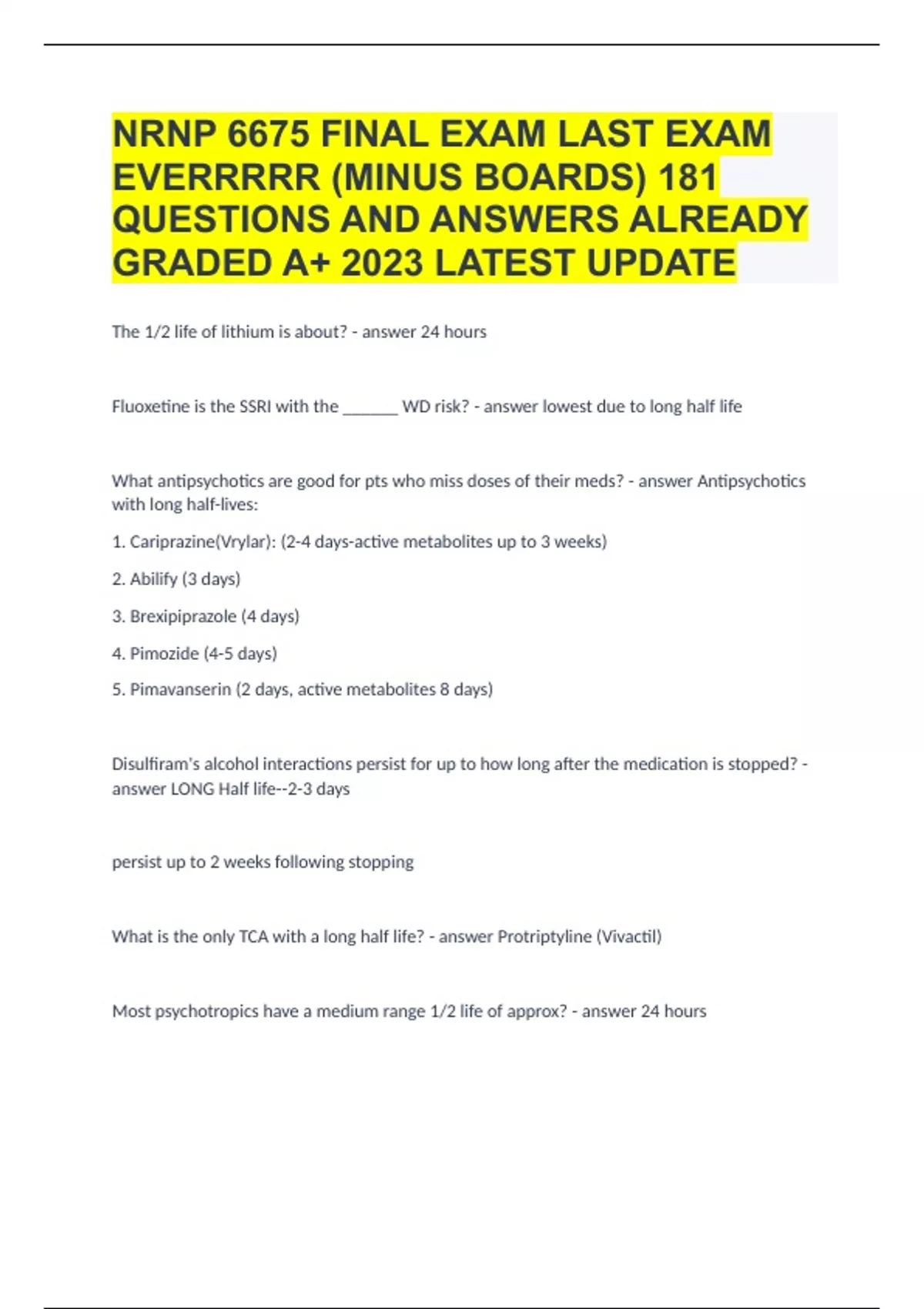 NRNP 6675 FINAL EXAM LAST EXAM EVERRRRR (MINUS BOARDS) |181 QUESTIONS AND ANSWERS