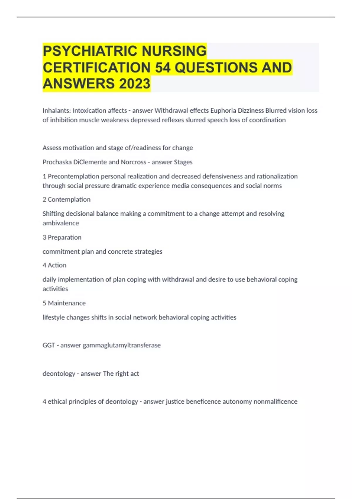 PSYCHIATRIC NURSING CERTIFICATION |54 QUESTIONS AND ANSWERS 2023.