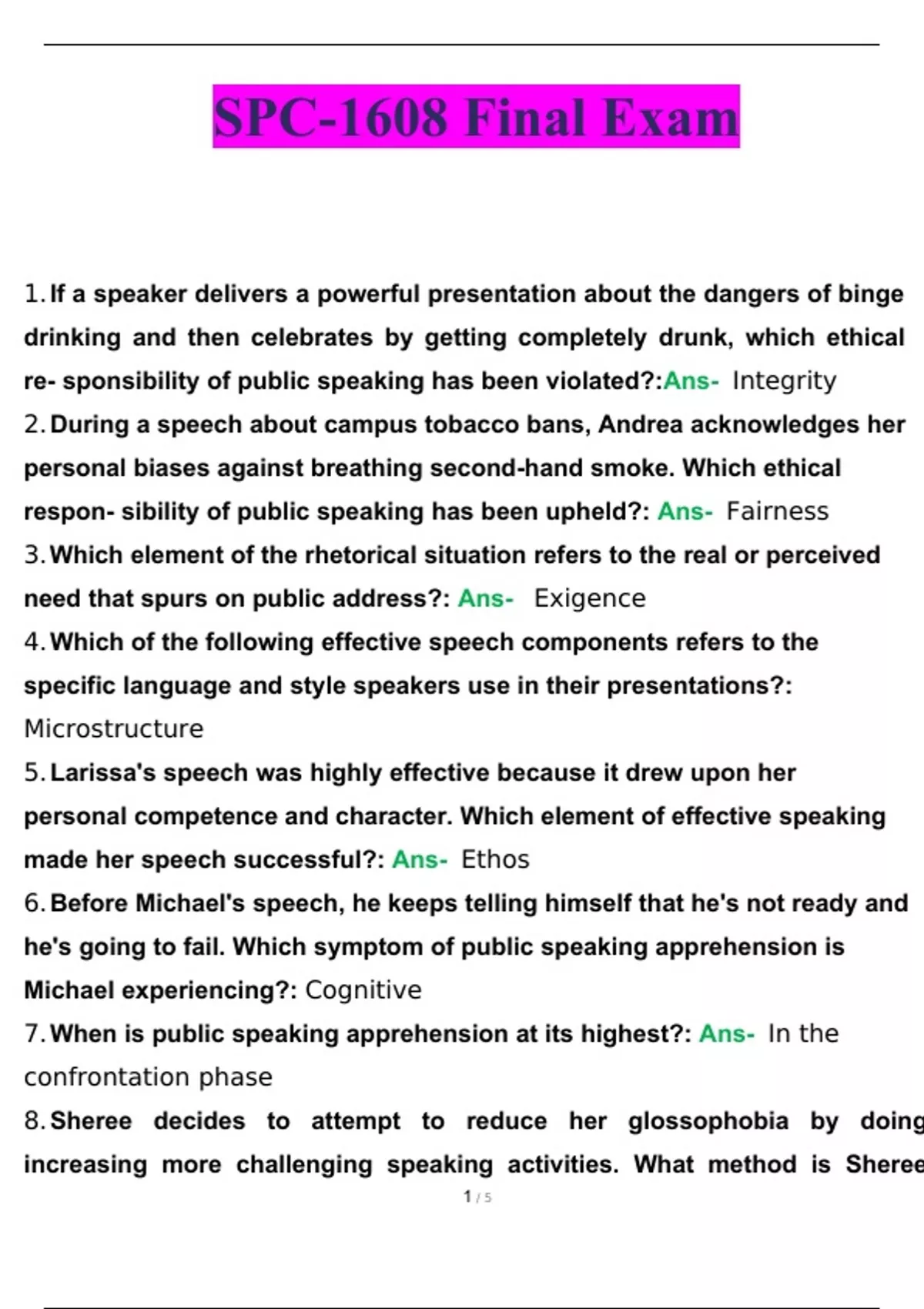 SPC-1608 Final Exam 2023 Solved Correctly