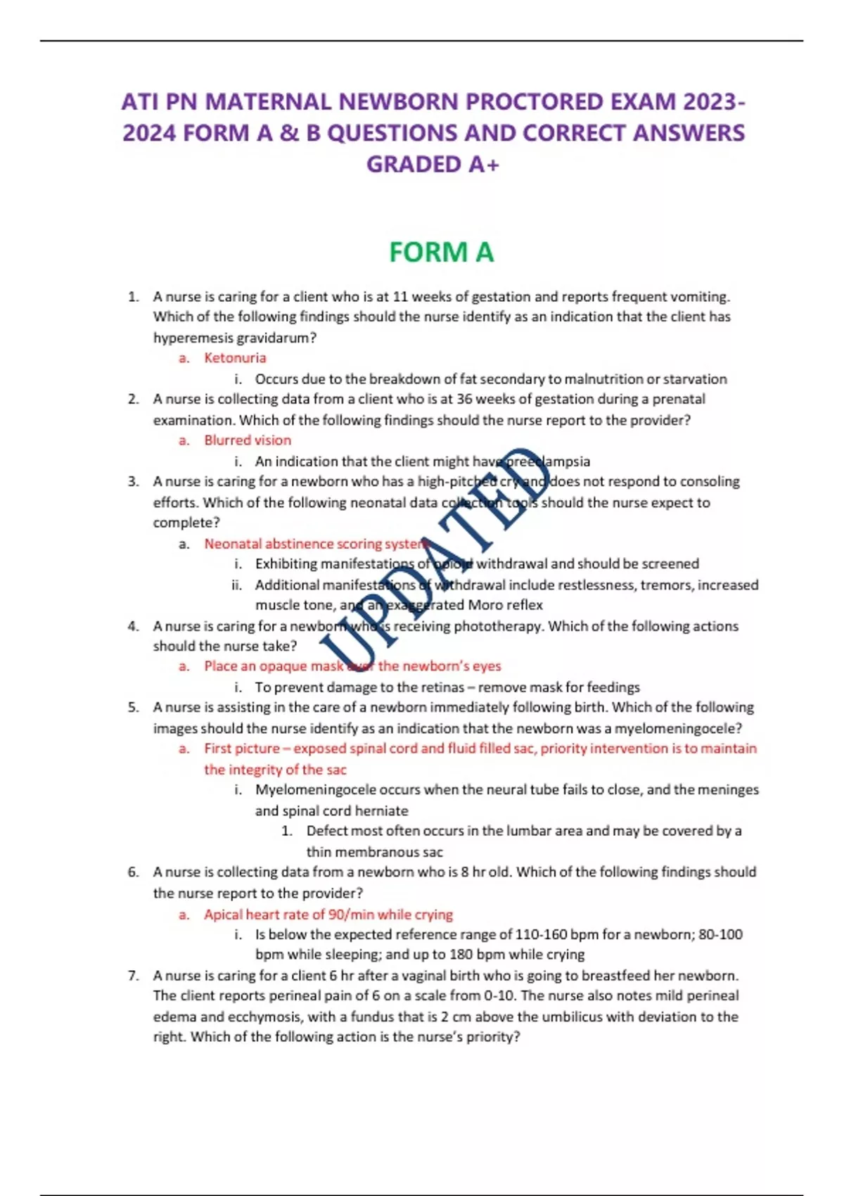 ATI PN MATERNAL NEWBORN PROCTORED EXAM FORM A & B QUESTIONS AND CORRECT ANSWERS GRADED A+ ATI PN MATERNAL NEWBORN PROCTORED EXAM FORM A & B QUESTIONS AND CORRECT ANSWERS GRADED A+