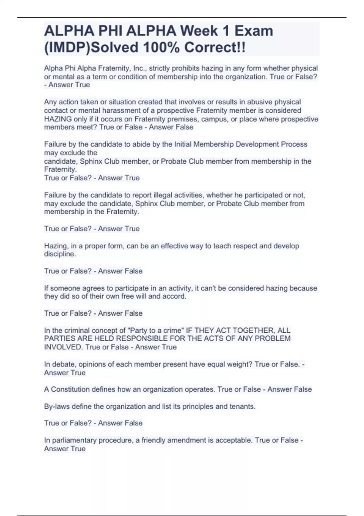 alpha phi alpha week 1 exam imdpsolved 100 corr