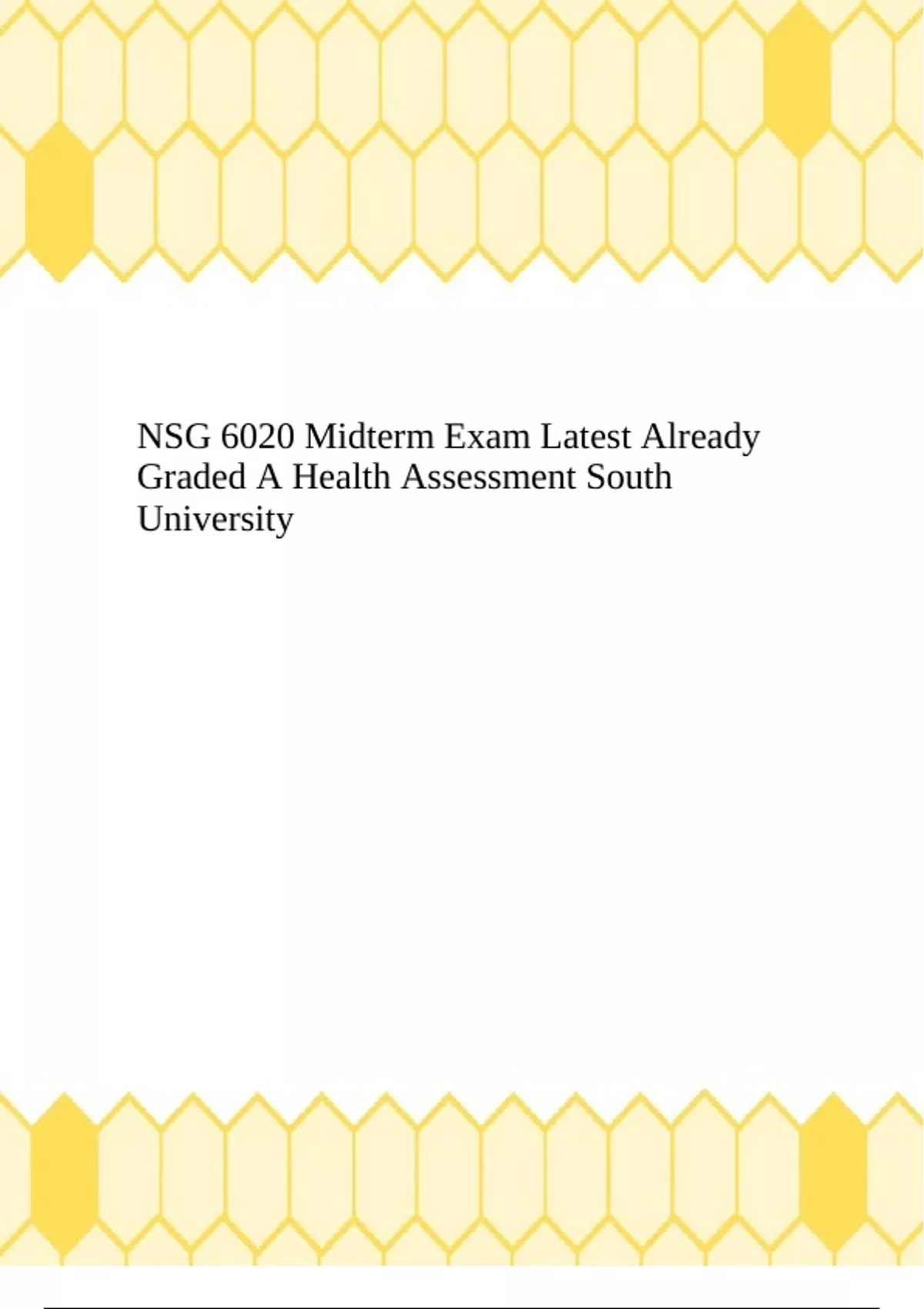 NSG 6020 Midterm Exam Latest Already Graded A Health Assessment South University