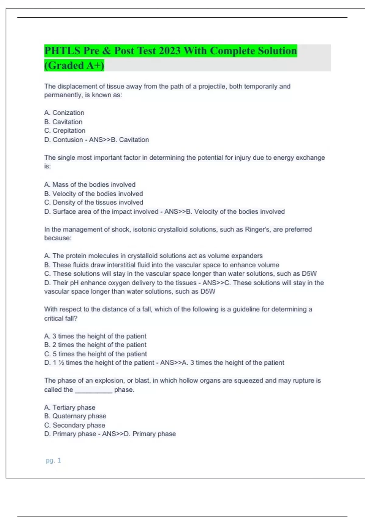 PHTLS Pre & Post Test 2023 With Complete Solution (Graded A+)PHTLS Pre & Post Test 2023 With Complete Solution (Graded A+)