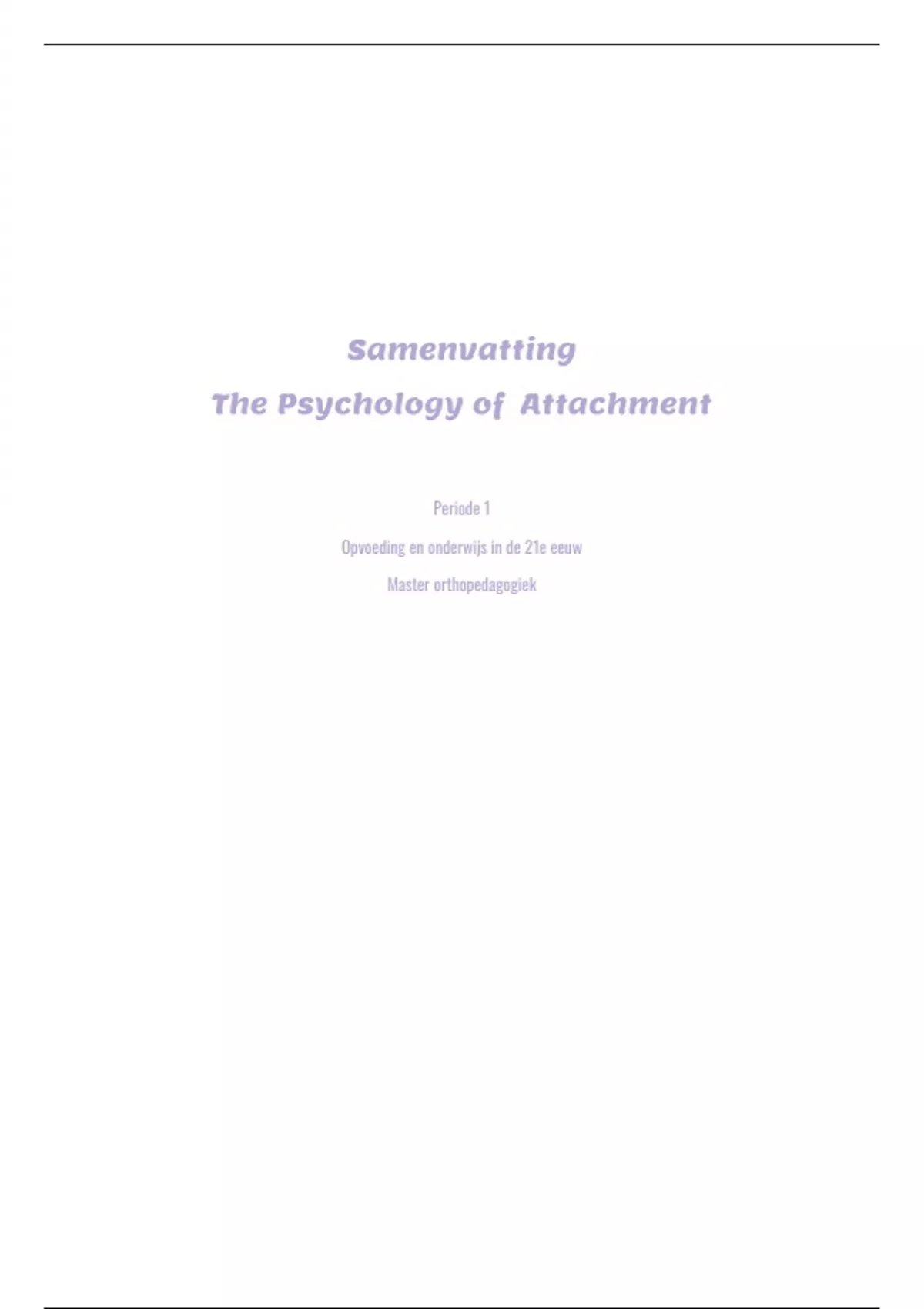 ○ Anna Freud gebruikte de term ‘attachment’ al; dit werd gebruikt om te verwijzen naar de sterke