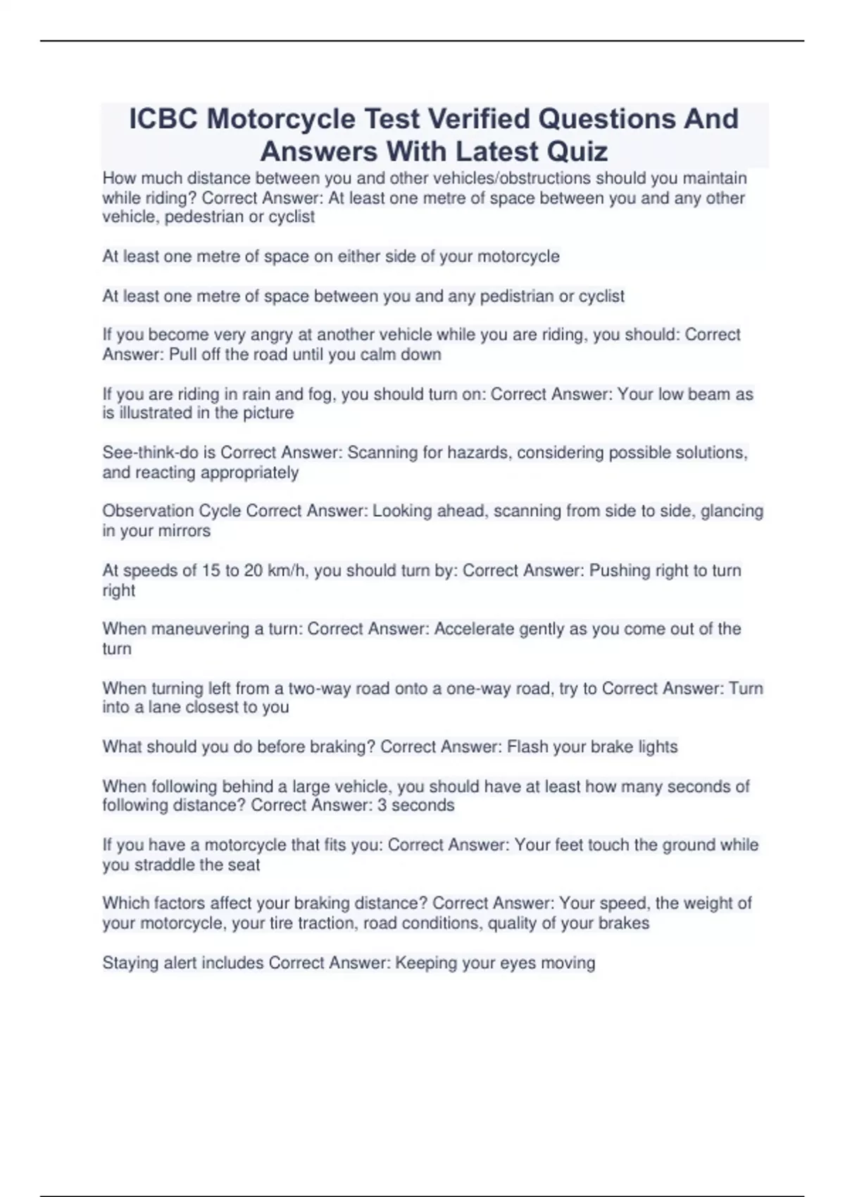 ICBC Motorcycle Test Verified Questions And Answers With Latest Quiz