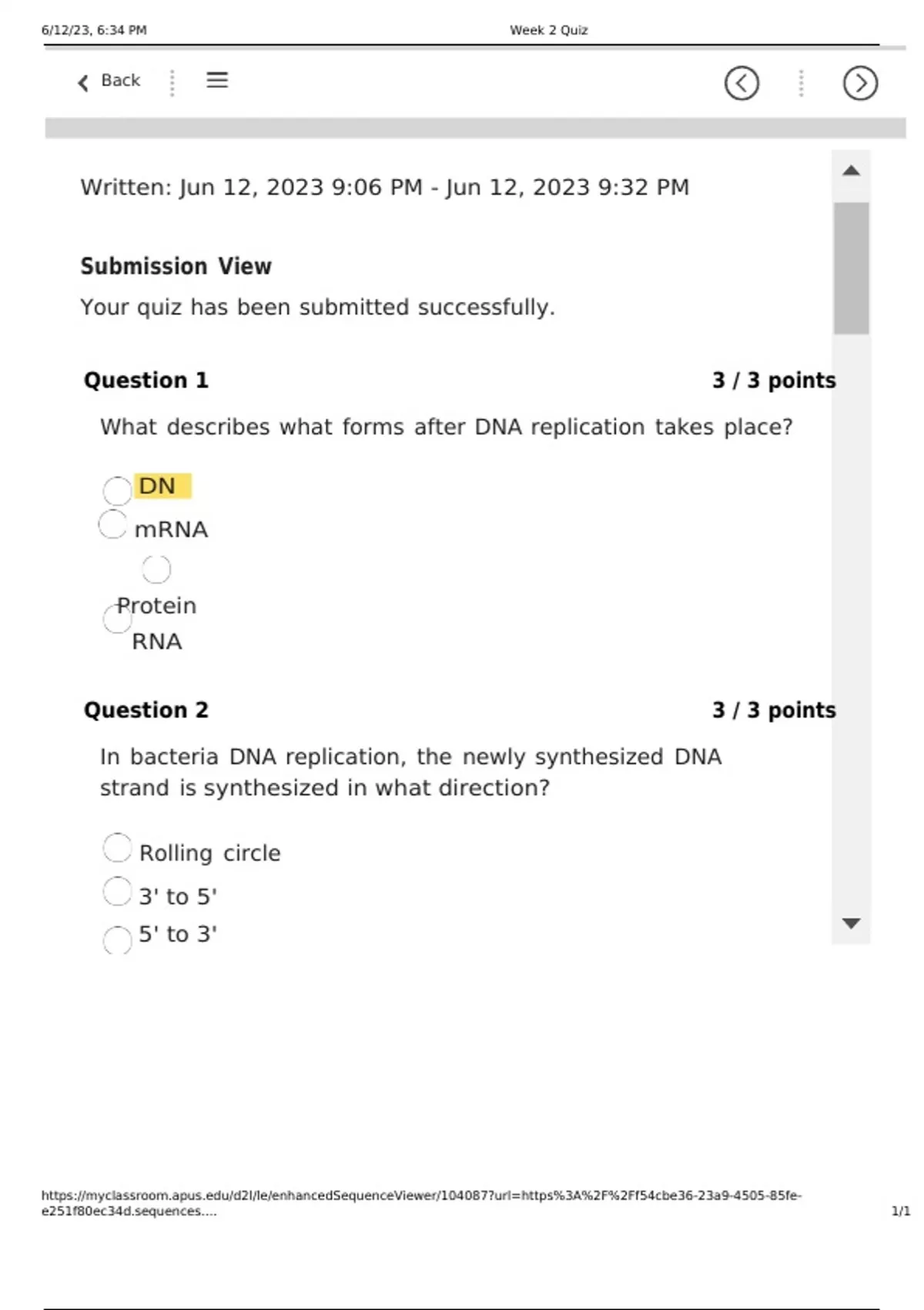 BIOL202 Week 2 Quiz (Only 2 Question)