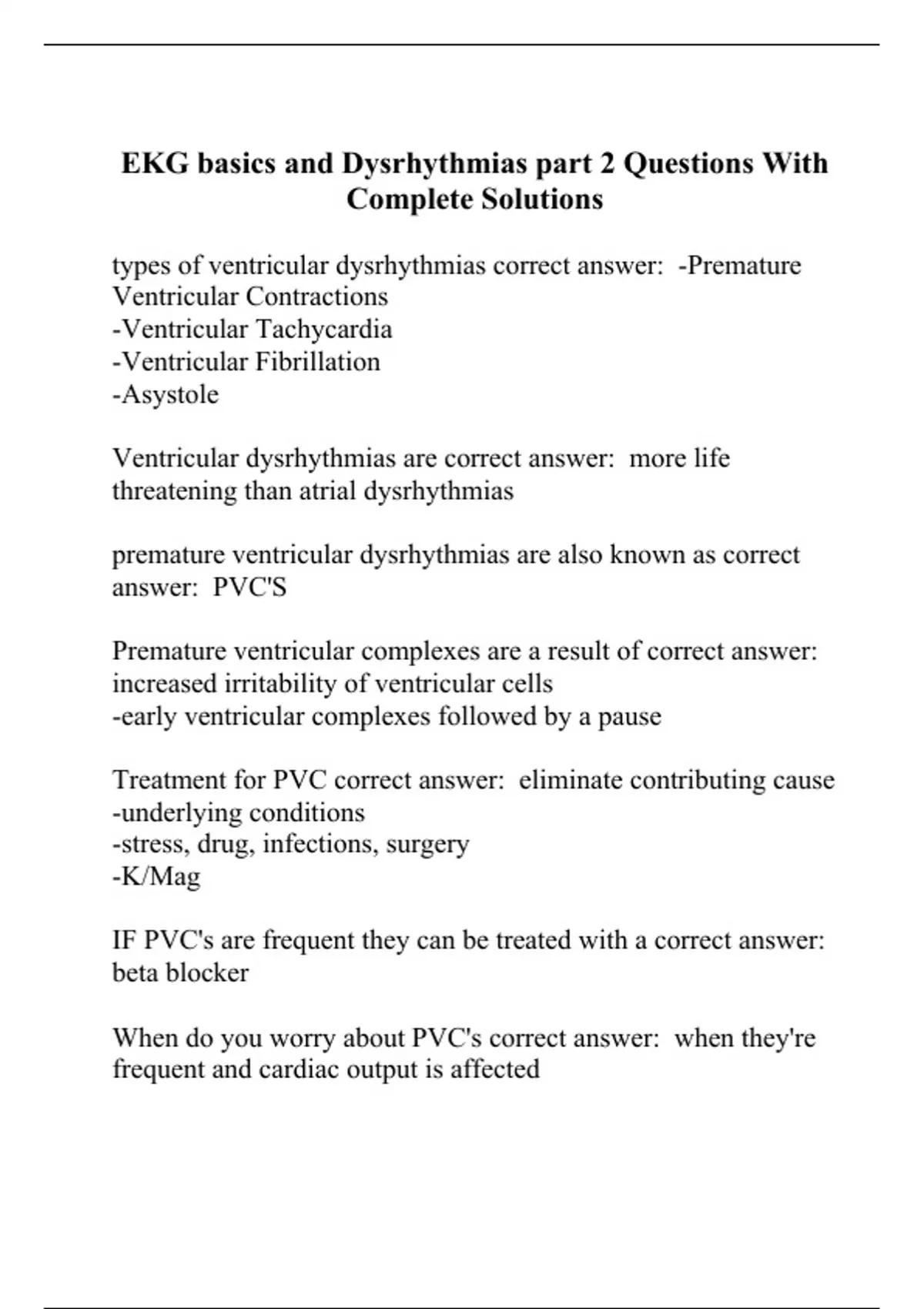 Treatment for PVC correct answer: eliminate contributing cause
