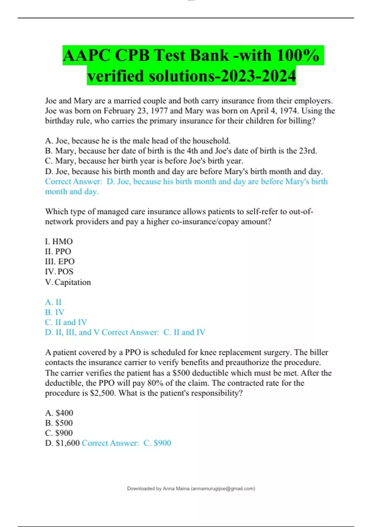 AAPC CPB Test Bank -with 100% verified solutions-