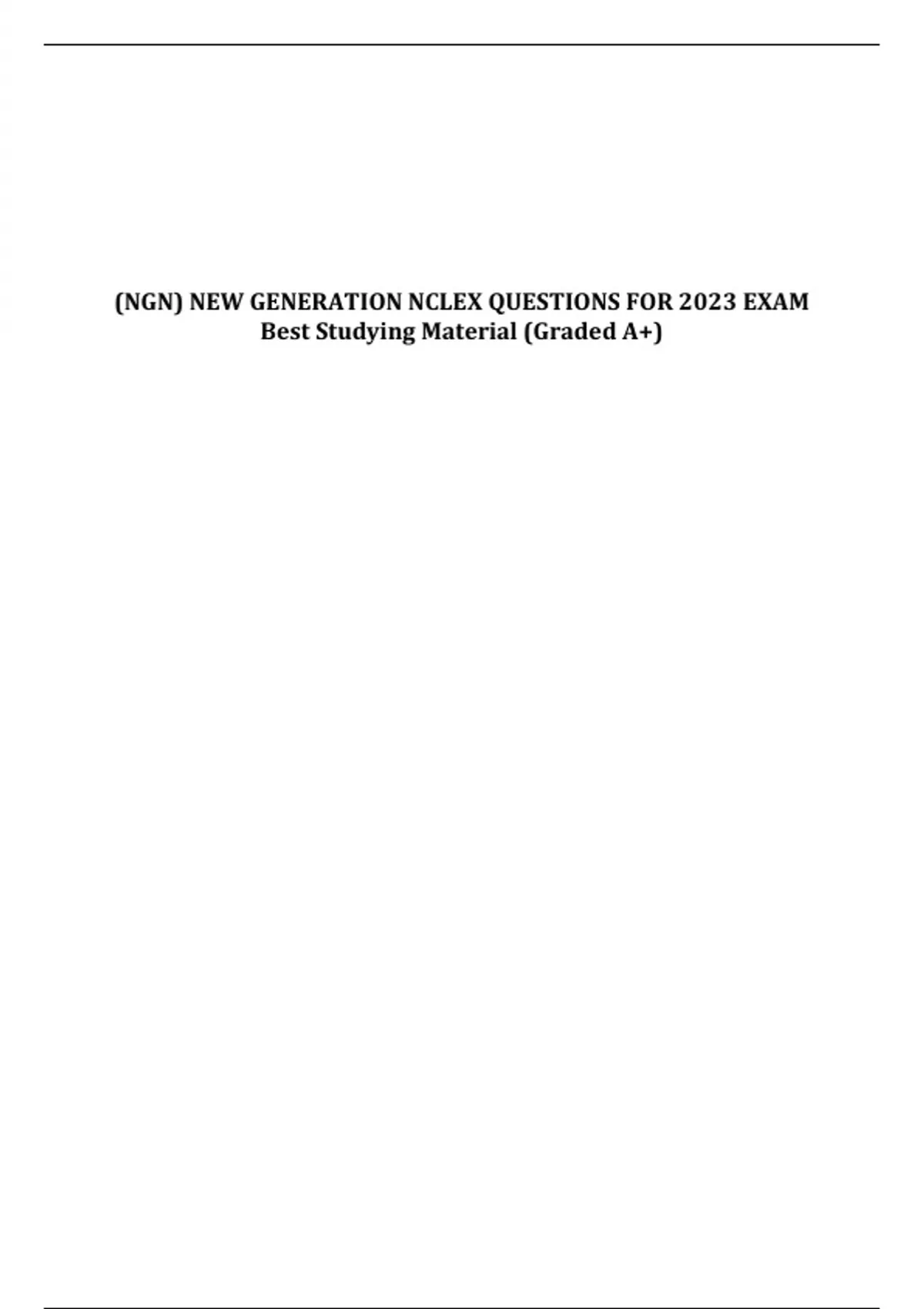 (NGN) NEW GENERATION NCLEX QUESTIONS FOR 2023 EXAM Best Studying Material (Graded A+)