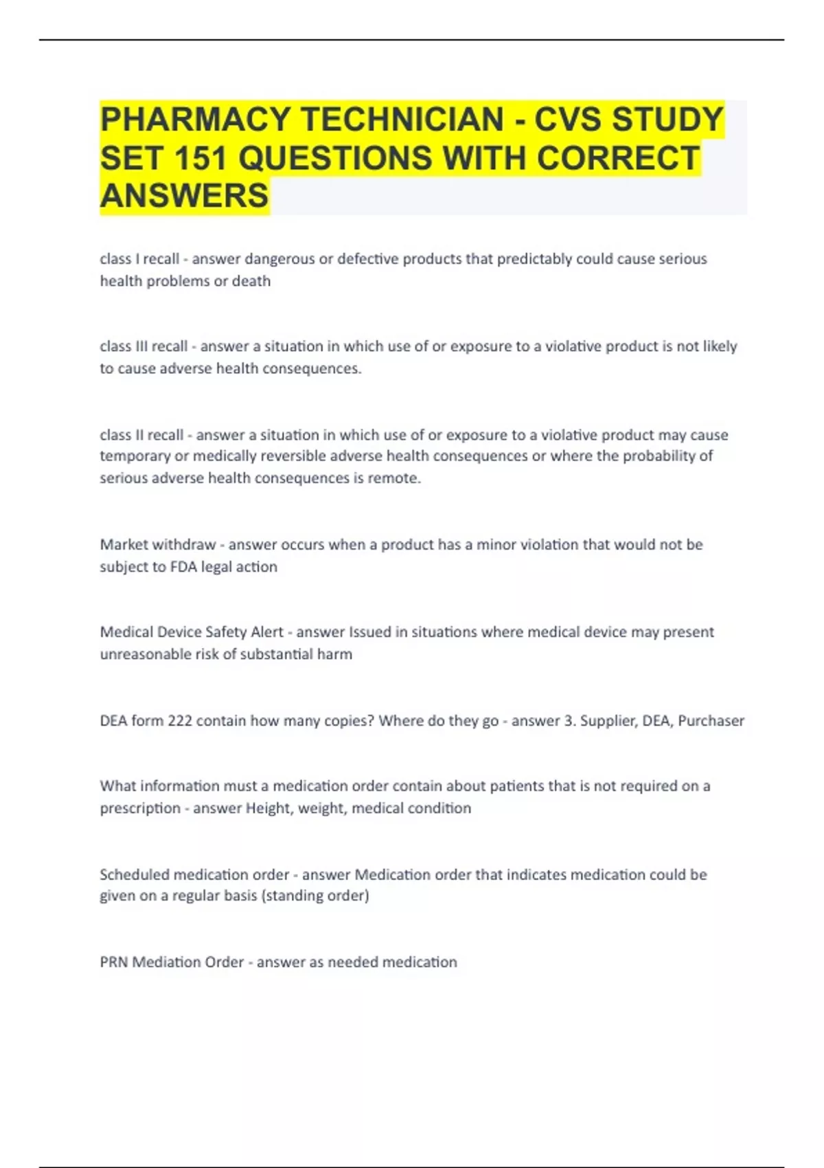 PHARMACY TECHNICIAN - CVS STUDY SET| 151 QUESTIONS WITH CORRECT ANSWERS|GUARANTEED SUCCESS