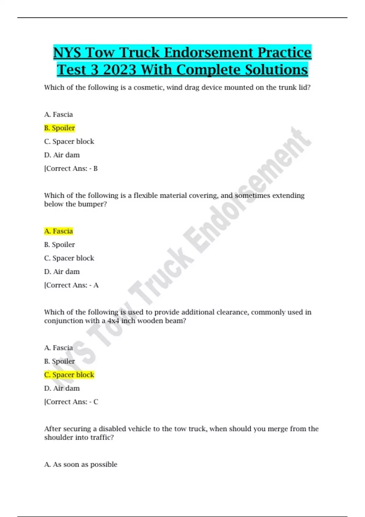 NYS Tow Truck Endorsement Practice Test 3 2023 With Complete Solutions,NYS Tow Truck Endorsement Practice Test 3 2023 With Complete Solutions,NYS Tow Truck Endorsement Practice Test 3 2023 With Complete Solutions,NYS Tow Truck Endorsement Practice Test 3 2023 With Complete Solutions