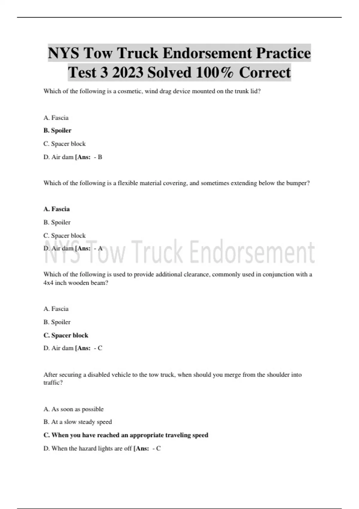 NYS Tow Truck Endorsement Practice Test 3 2023 Solved 100% Correct,NYS Tow Truck Endorsement Practice Test 3 2023 Solved 100% Correct,NYS Tow Truck Endorsement Practice Test 3 2023 Solved 100% Correct,NYS Tow Truck Endorsement Practice Test 3 2023 Solved 100% Correct,NYS Tow Truck Endorsement Practice Test 3 2023 Solved 100% Correct