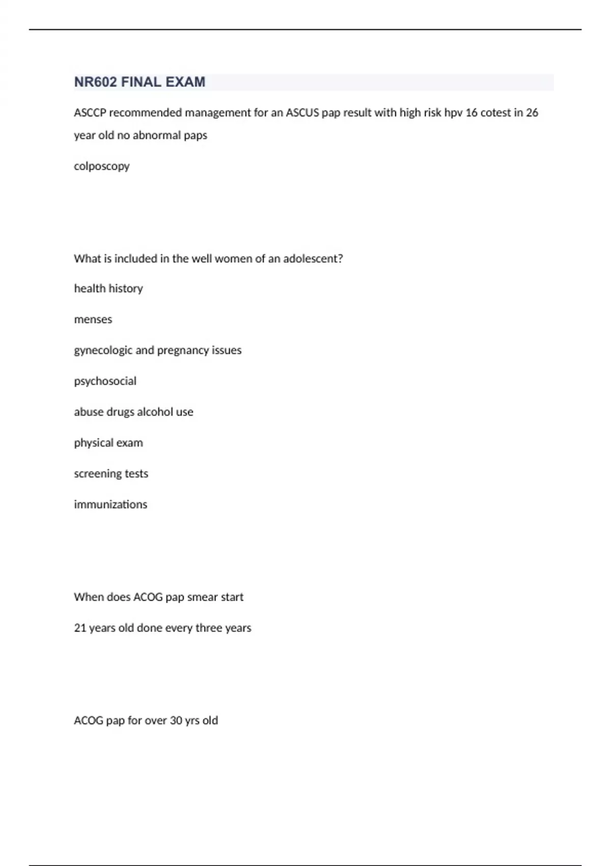 NR 602 Final Actual Exam Questions and Answers (2024 / 2025) (Verified Answers)- Chamberlain