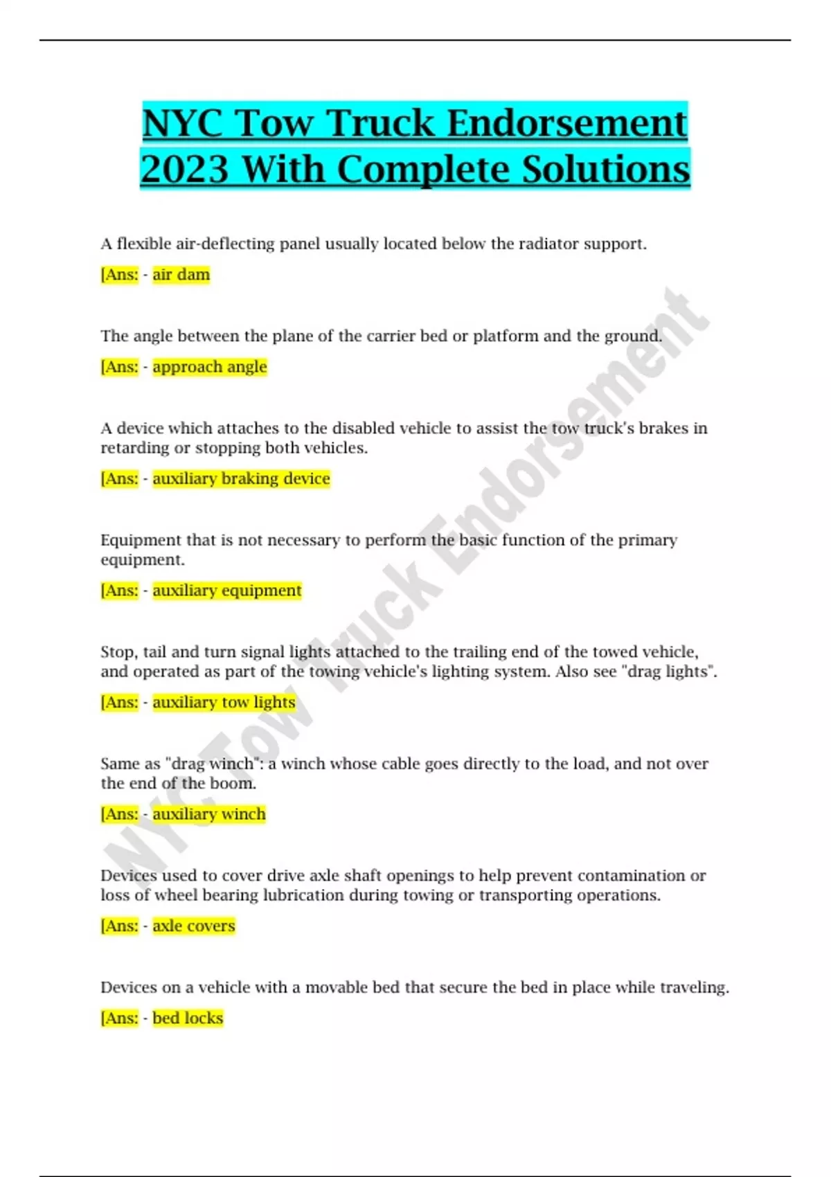 NYC Tow Truck Endorsement 2023 With Complete Solutions,NYC Tow Truck Endorsement 2023 With Complete Solutions