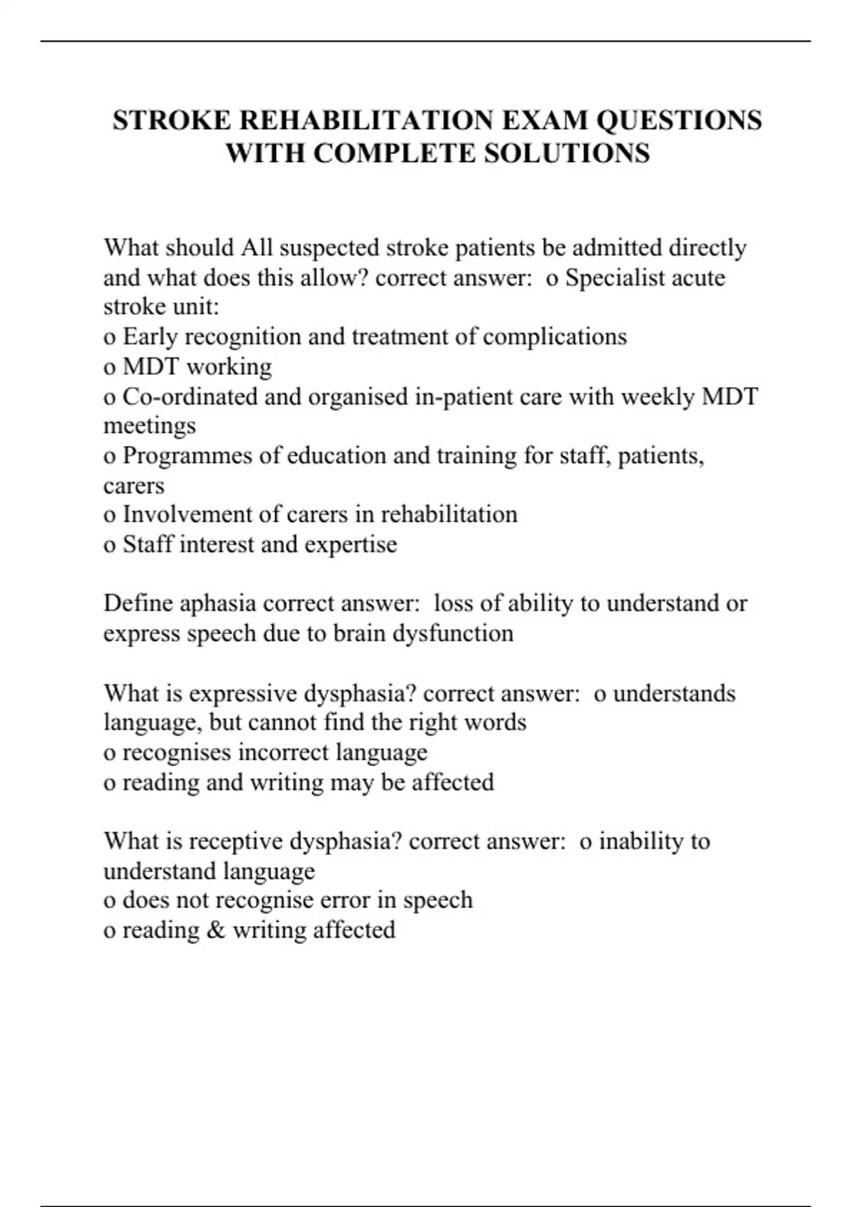 stroke rehabilitation exam questions with complete