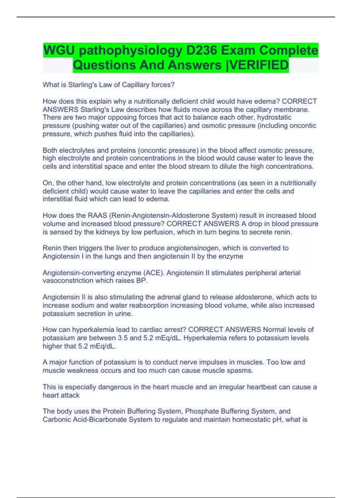 WGU pathophysiology D236 Exam Complete Questions And Answers |VERIFIED