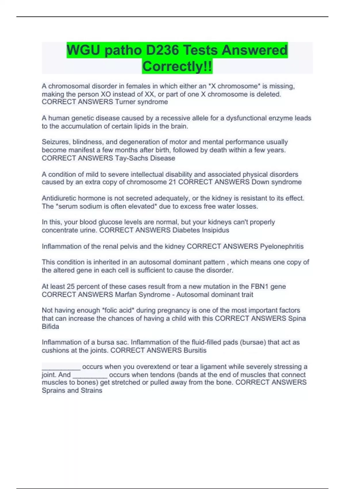 WGU patho D236 Tests Answered Correctly!!