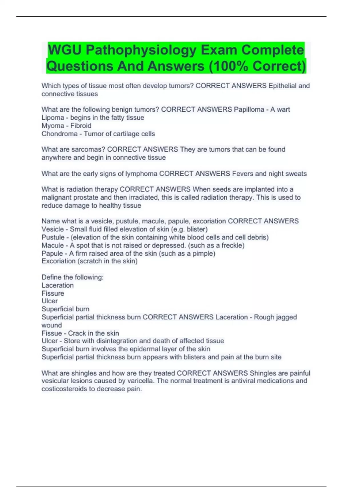 WGU Pathophysiology Exam Complete Questions And Answers (100% Correct)