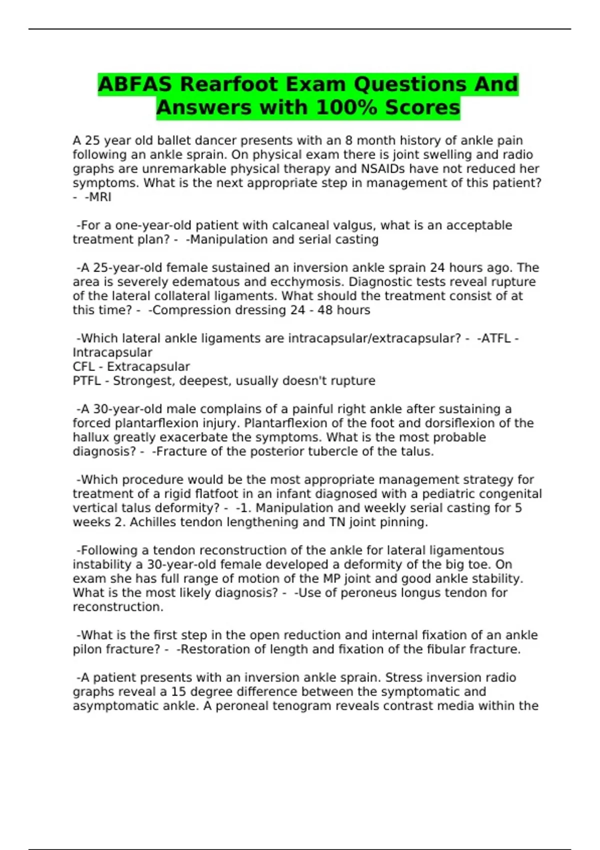 ABFAS Rearfoot Exam Questions And Answers with 100% Scores