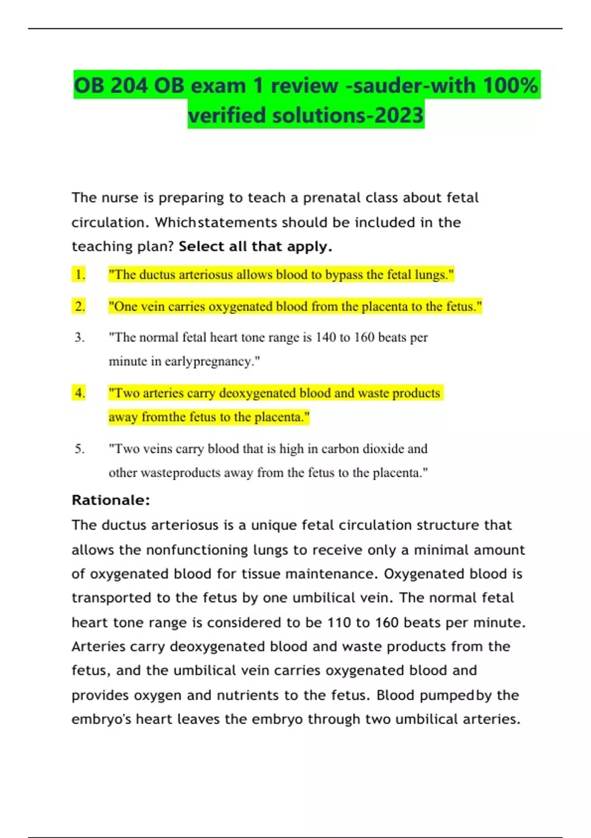 OB 204 OB exam 1 review -saunder-with 100% verified solutions-2023