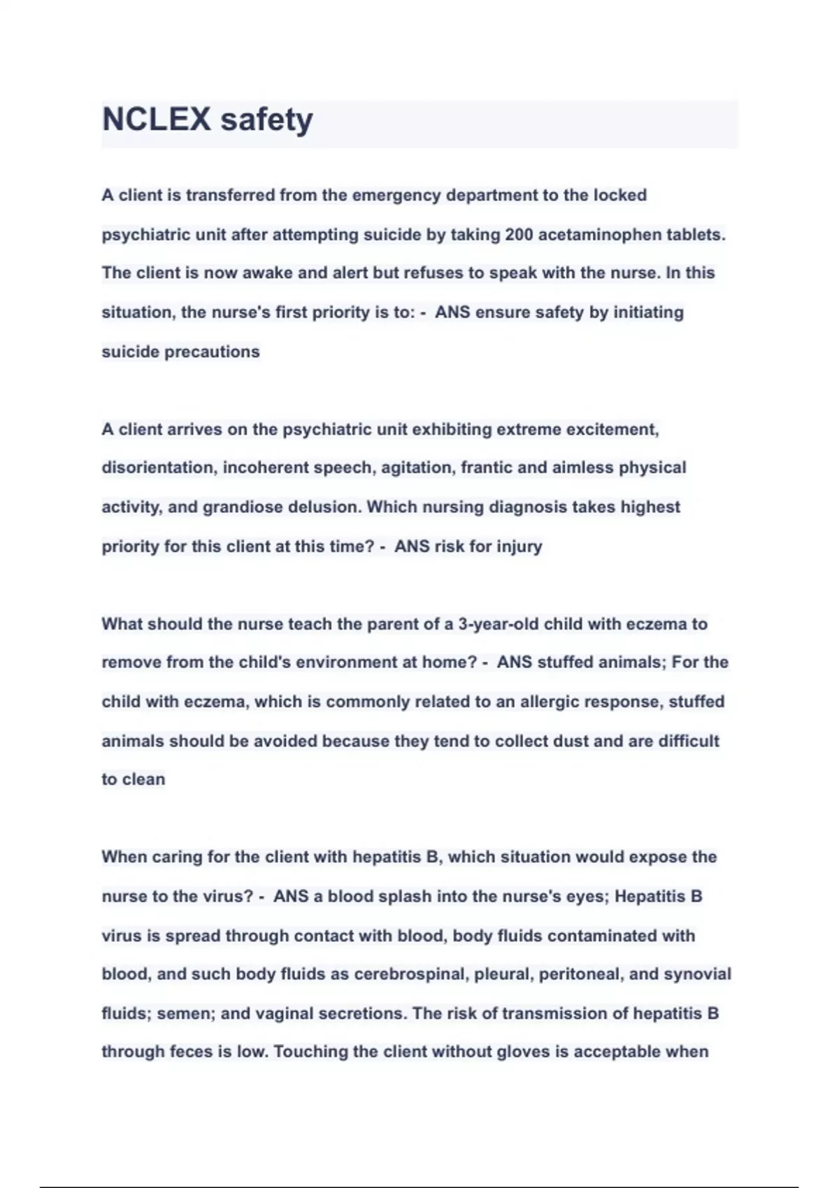 - NCLEX safety