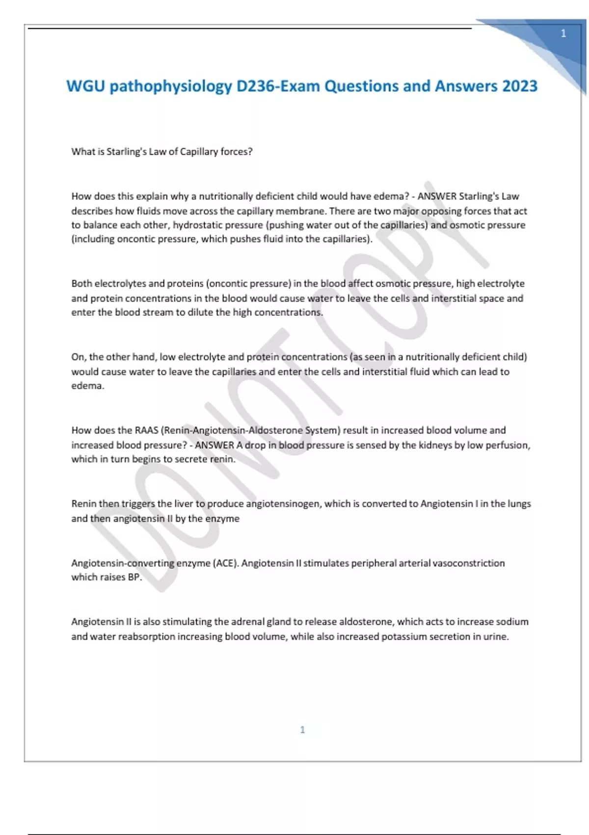 WGU pathophysiology D236-Exam Questions and Answers 2023