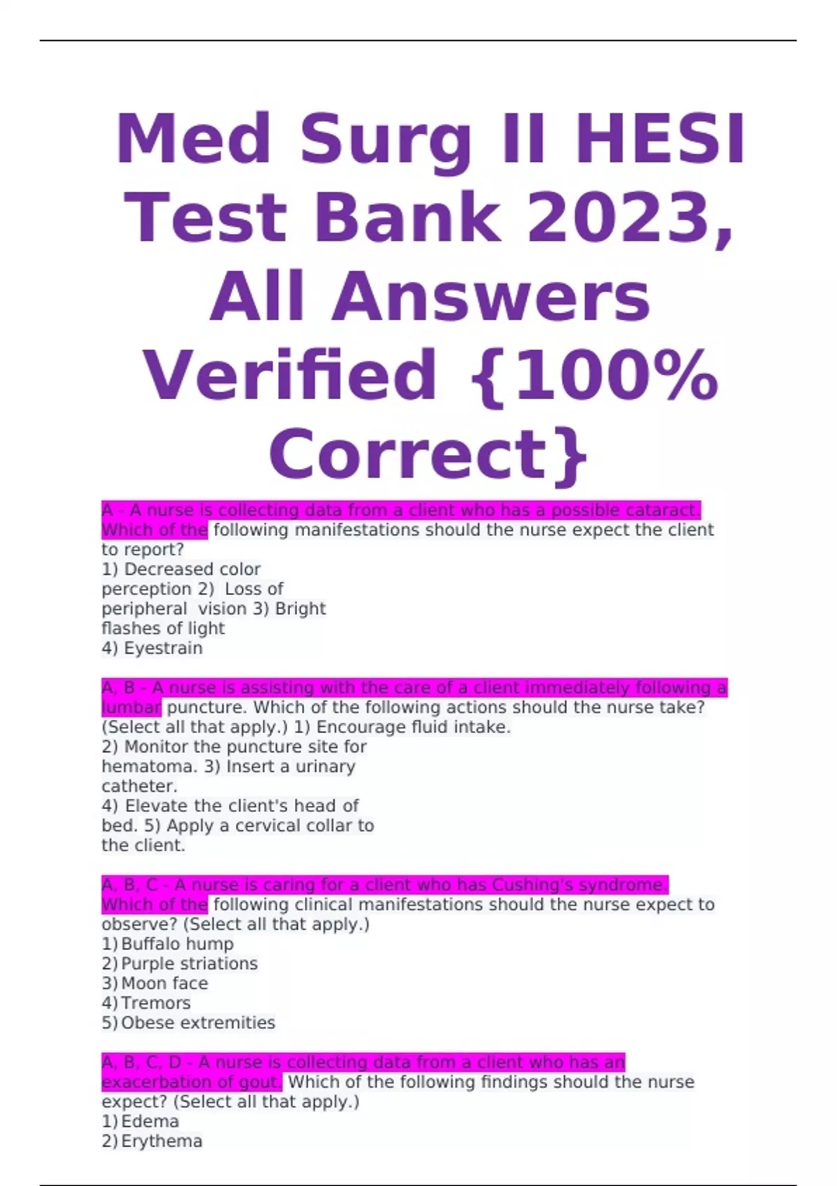 Med Surg II HESI Test Bank 2023, All Answers Verified {100% Correct} HESI Med Surg Test Bank 2023