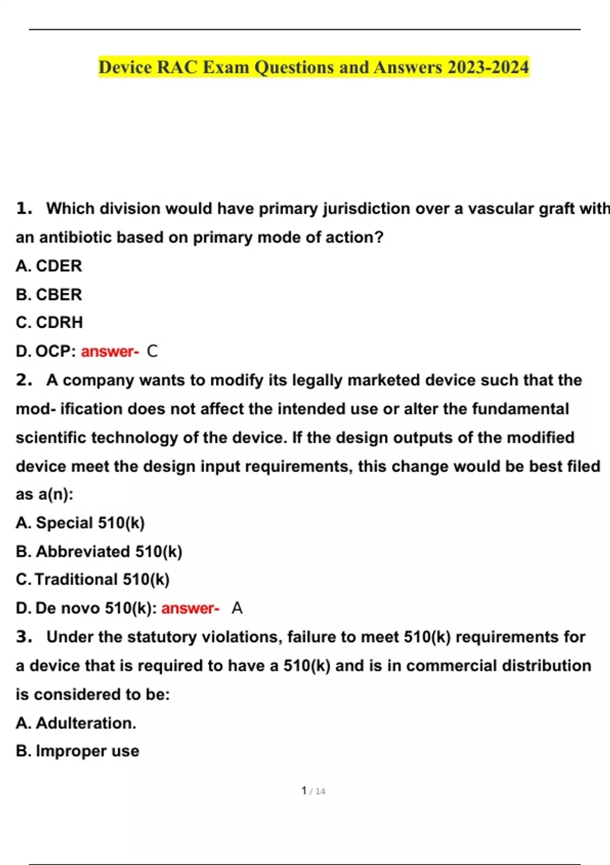 device rac exam questions and answers