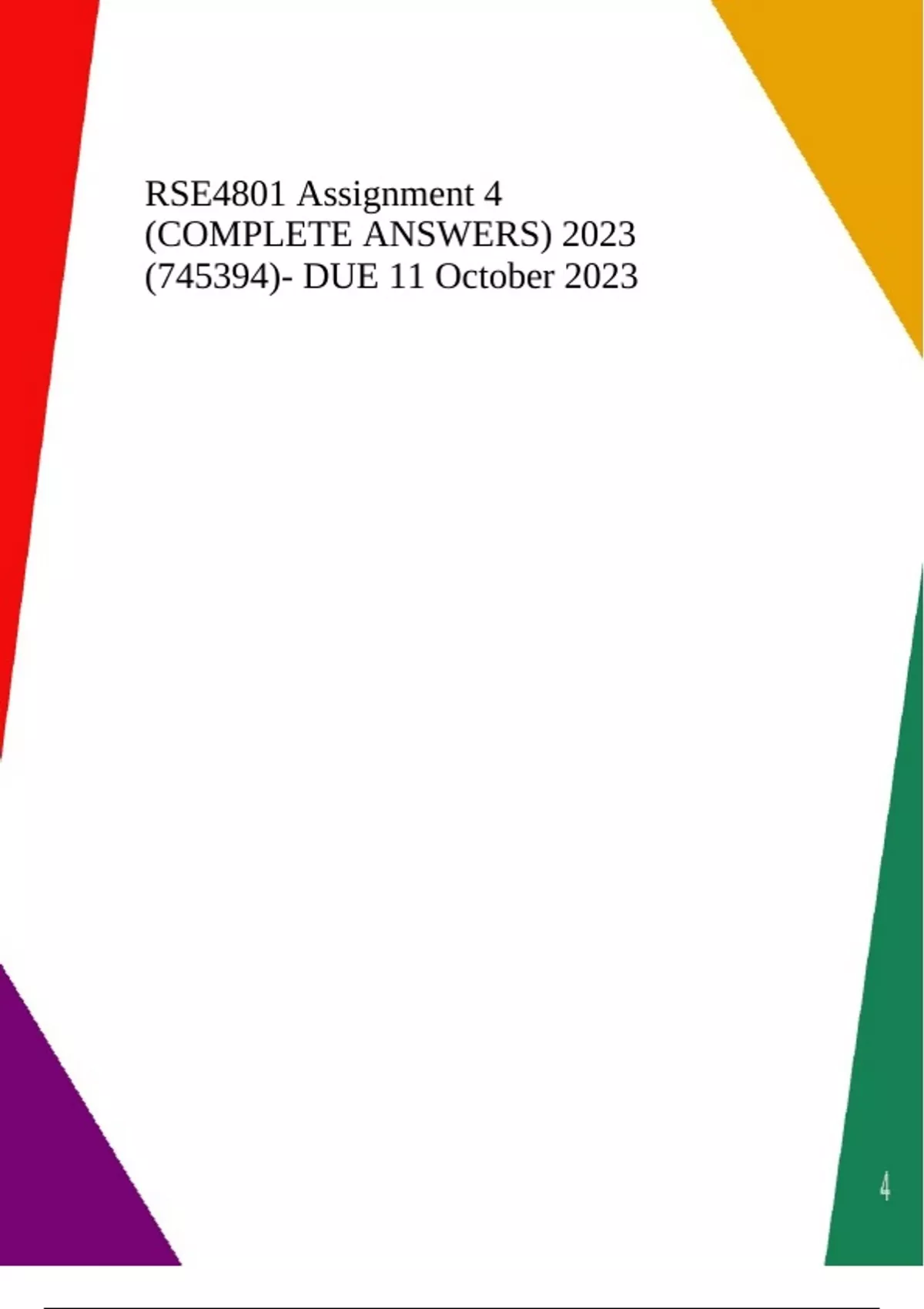 RSE4801 Assignment 4 (COMPLETE ANSWERS) 2023 (745394)- DUE 11 October 2023