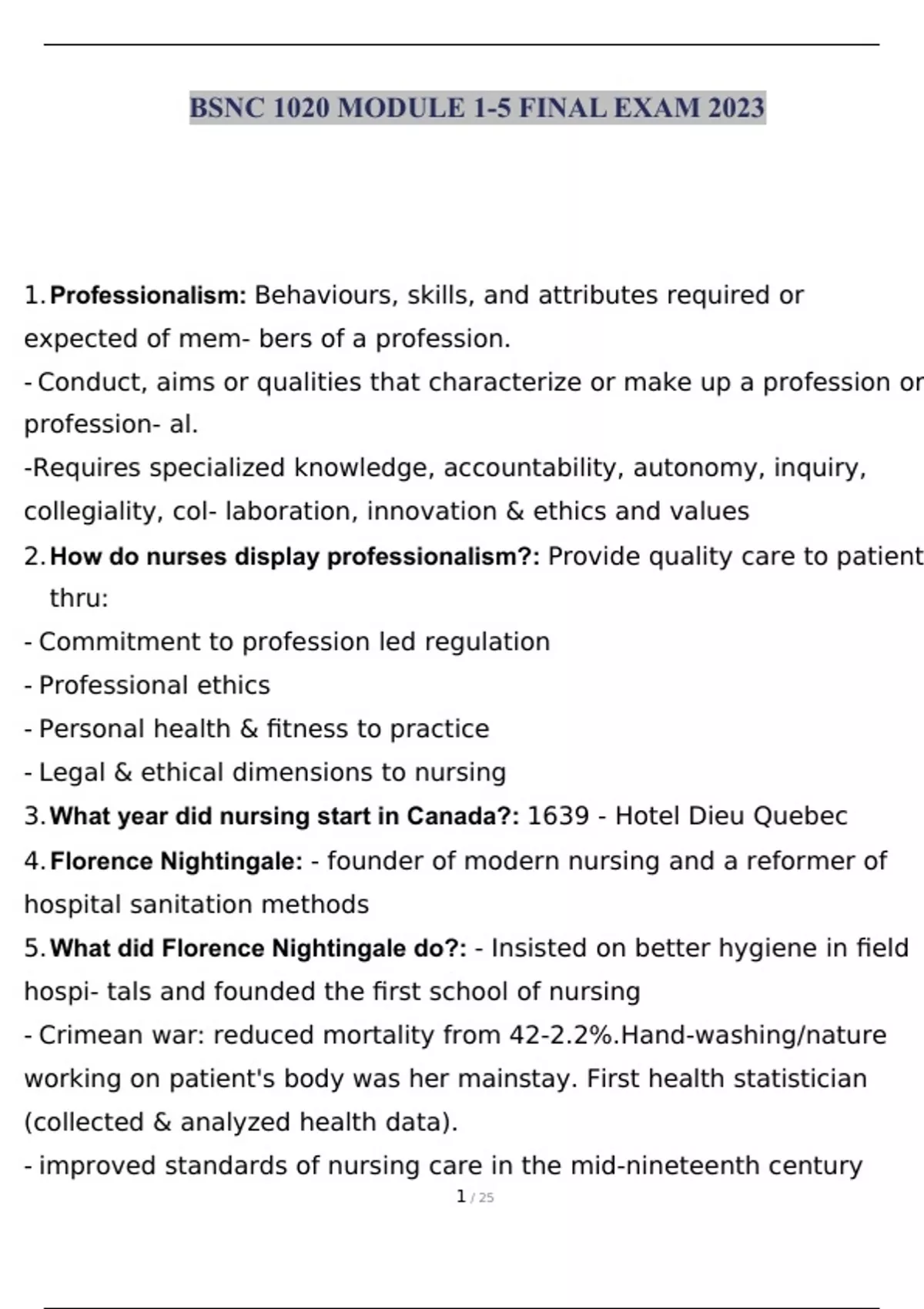 BSNC 1020 MODULE 1-5 FINAL EXAM 2023 WITH COMPLETE SOLUTION