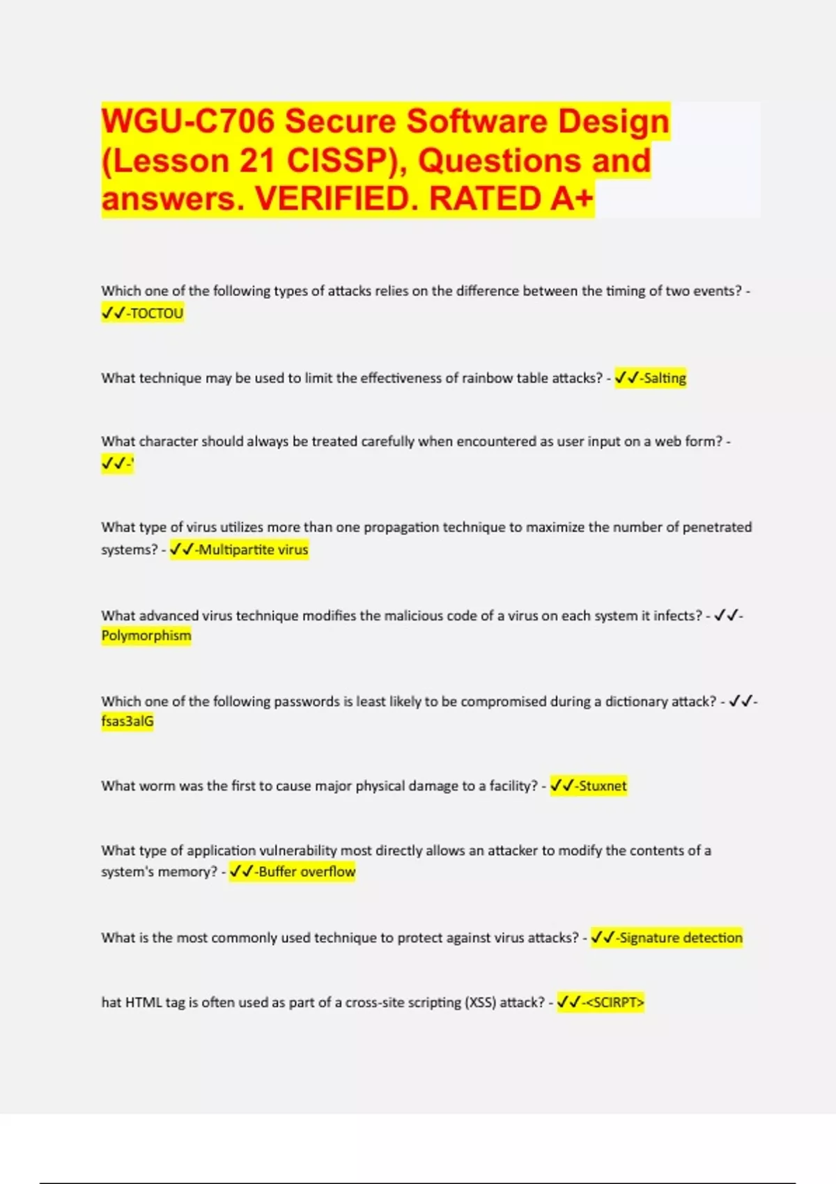 WGU-C706 Secure Software Design (Lesson 21 CISSP), Questions and answers. VERIFIED. RATED A+ 2024