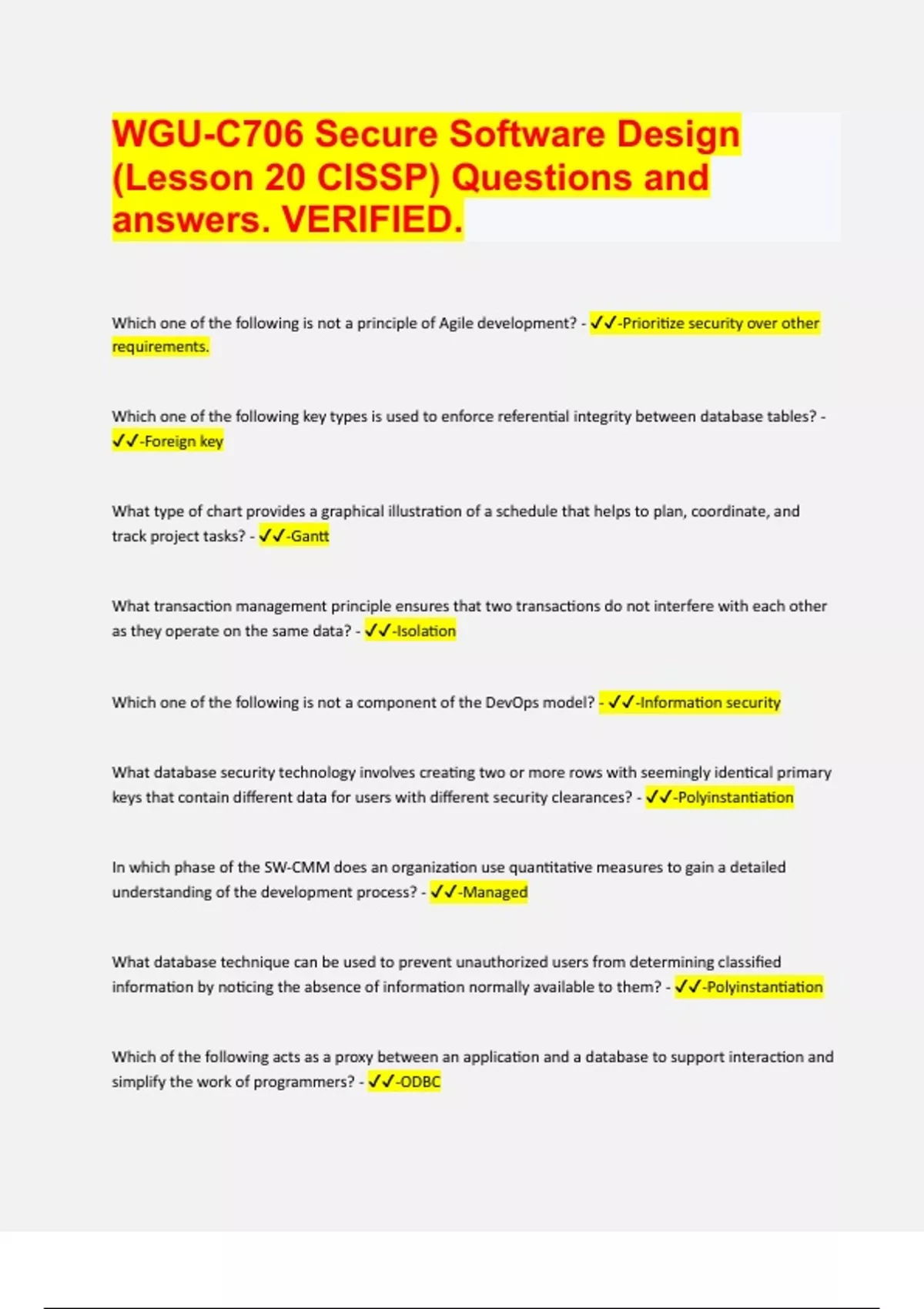 WGU-C706 Secure Software Design (Lesson 20 CISSP) Questions and answers. VERIFIED 2024