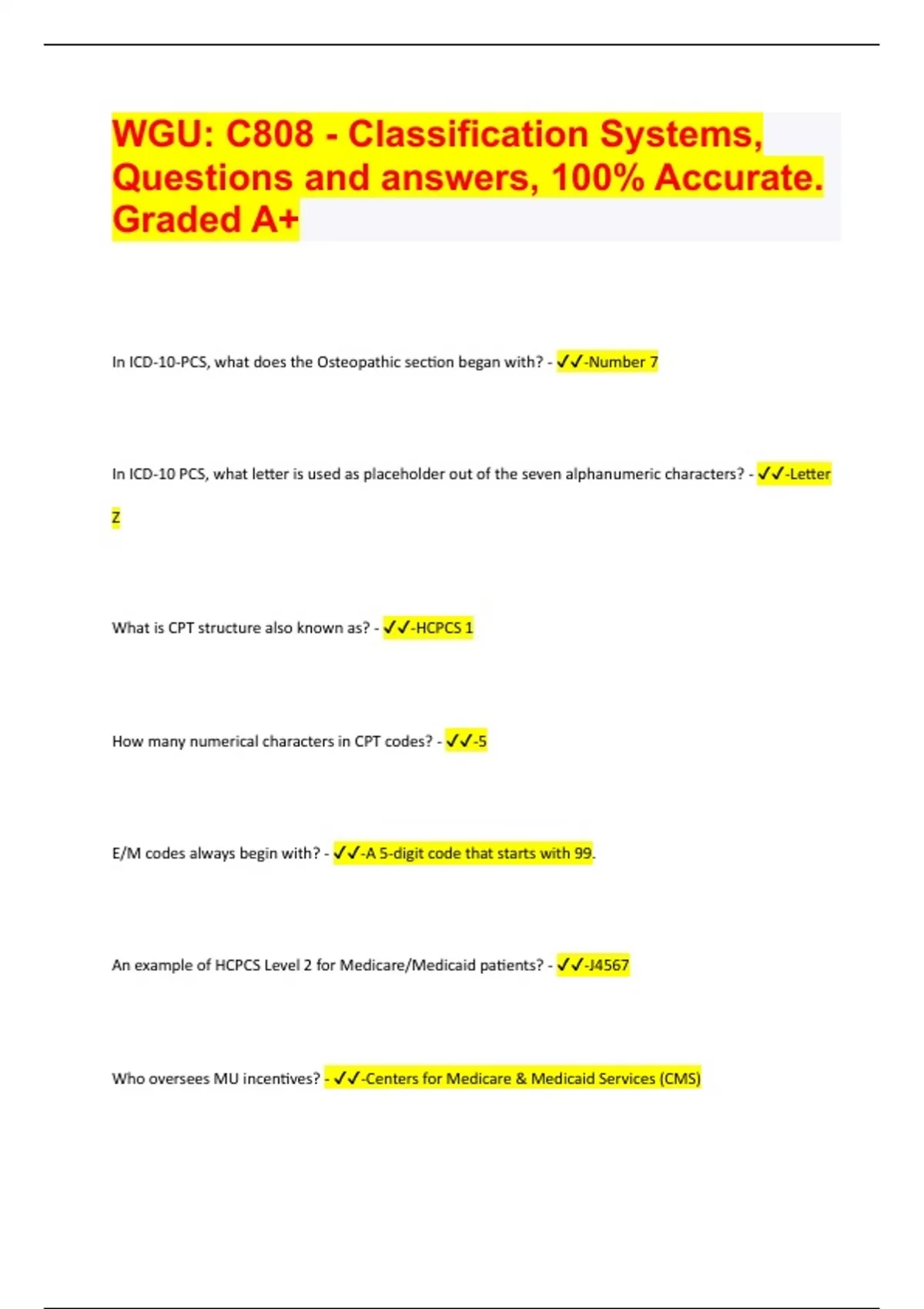 WGU: C808 - Classification Systems, Questions and answers, 100% Accurate. Graded A+ 2024