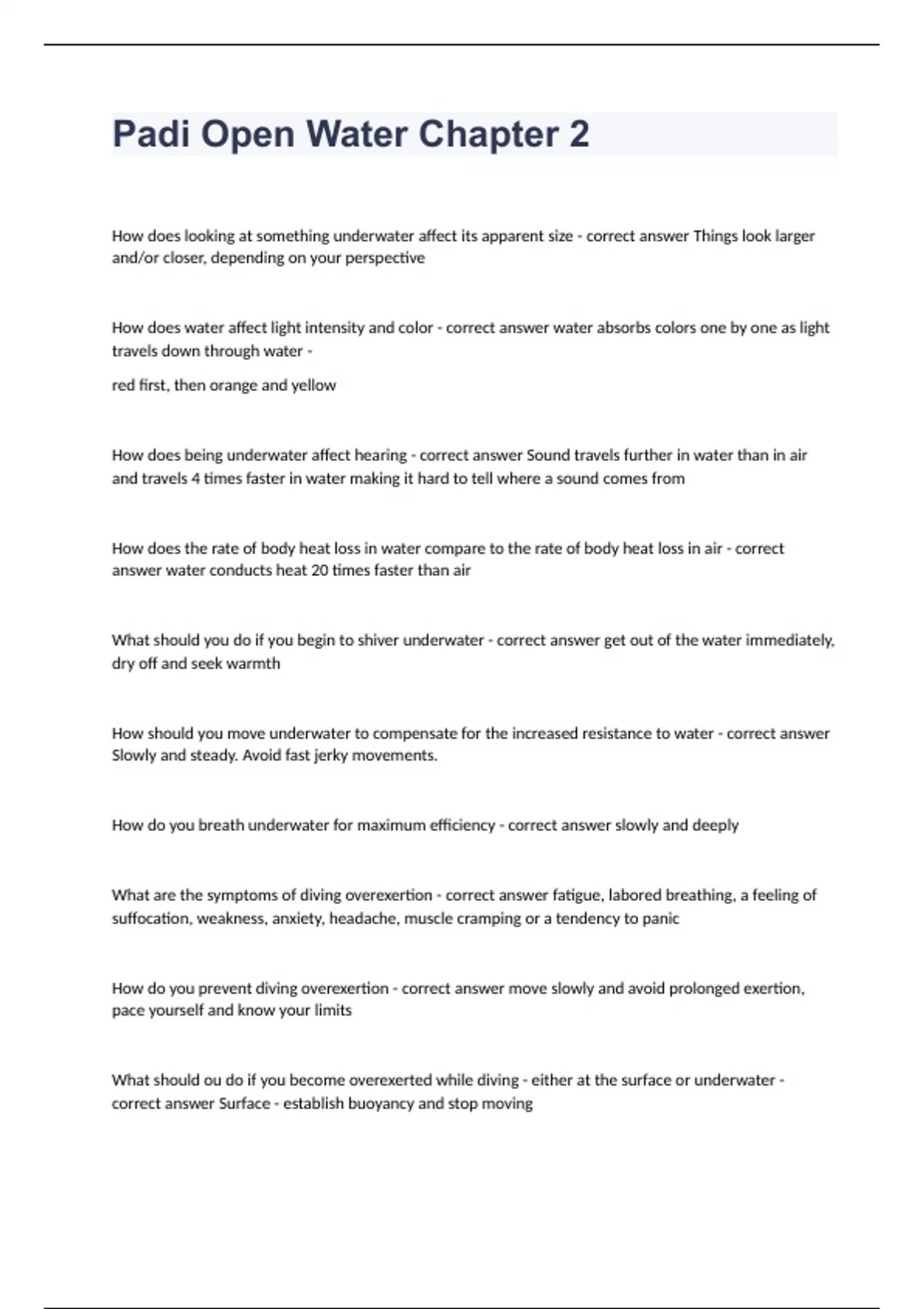 Padi Open Water Chapter 2 question n answers graded A+ 2023