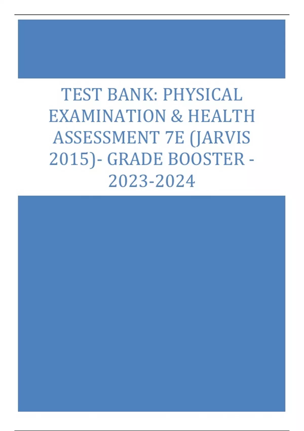 TEST BANK: PHYSICAL EXAMINATION & HEALTH ASSESSMENT 7E (JARVIS 2015)- GRADE BOOSTER -