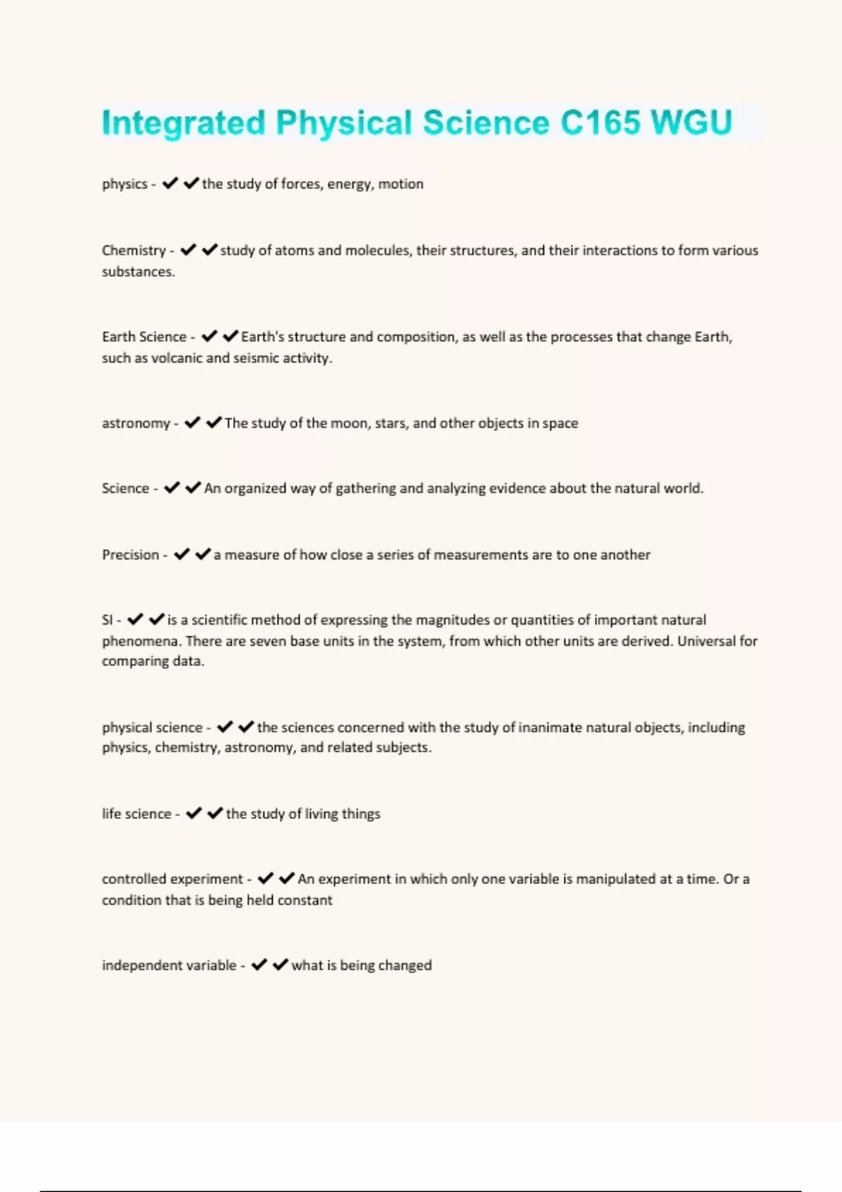 Integrated Physical Science C165 WGU Exam Solved | 250 Questions & Answers Graded A+