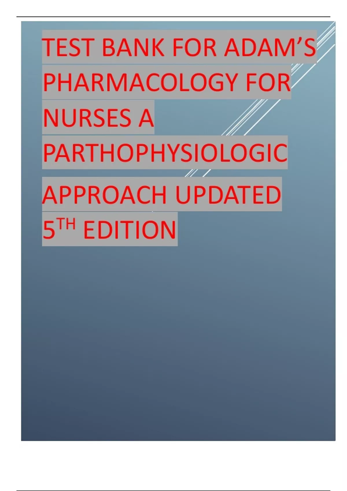 TEST BANK FOR ADAM’S PHARMACOLOGY FOR NURSES A PARTHOPHYSIOLOGIC APPROACH,UPDATED 5TH EDITION.