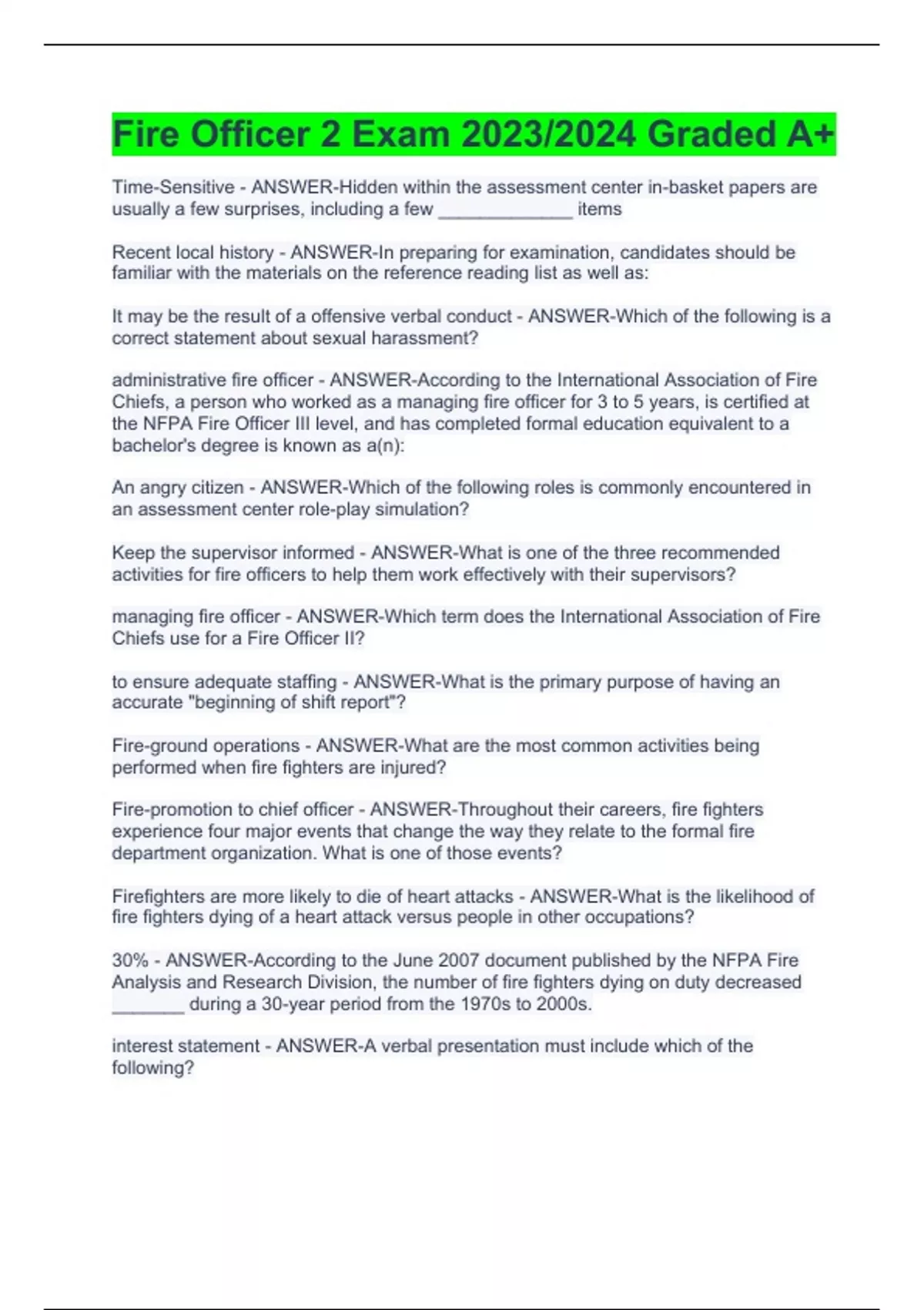 Fire Officer 2 Exam 2023/2024 Graded A+