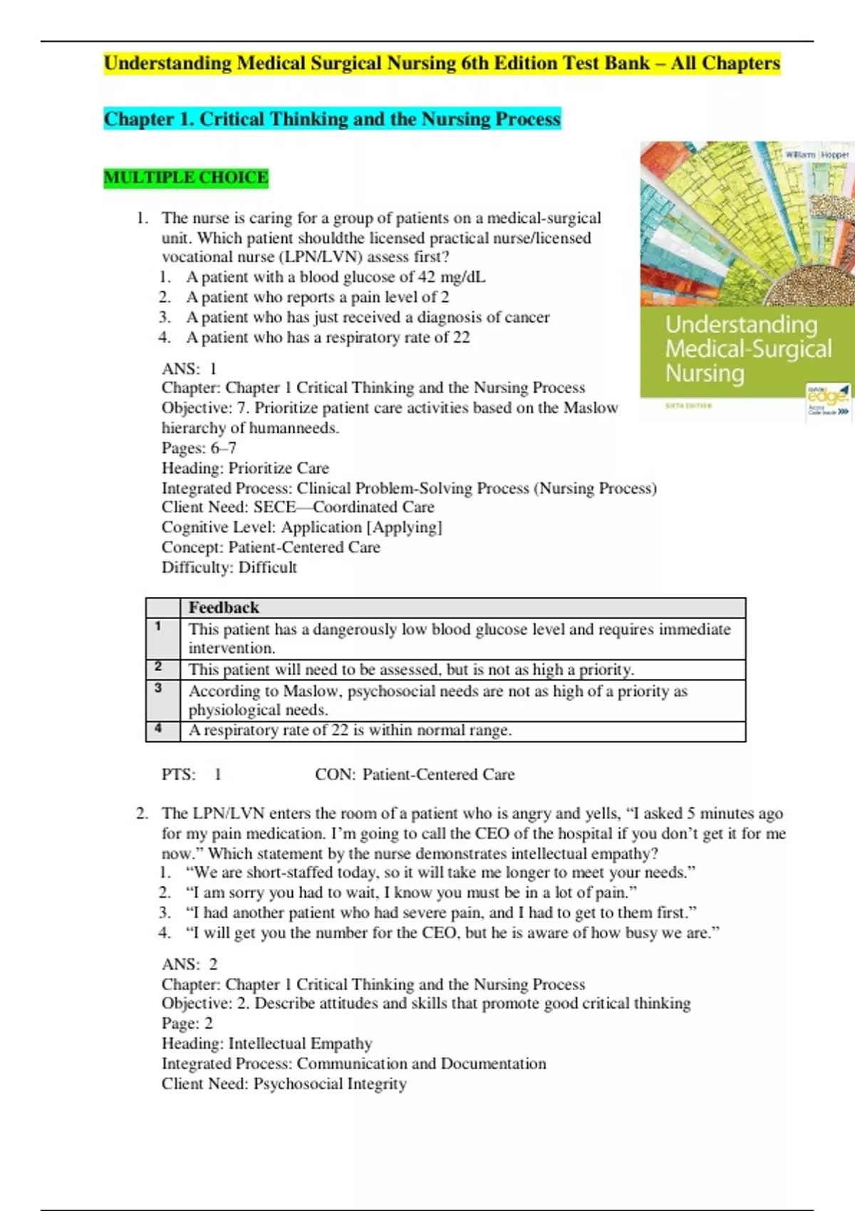 Understanding Medical Surgical Nursing 6th Edition by Williams Test Bank