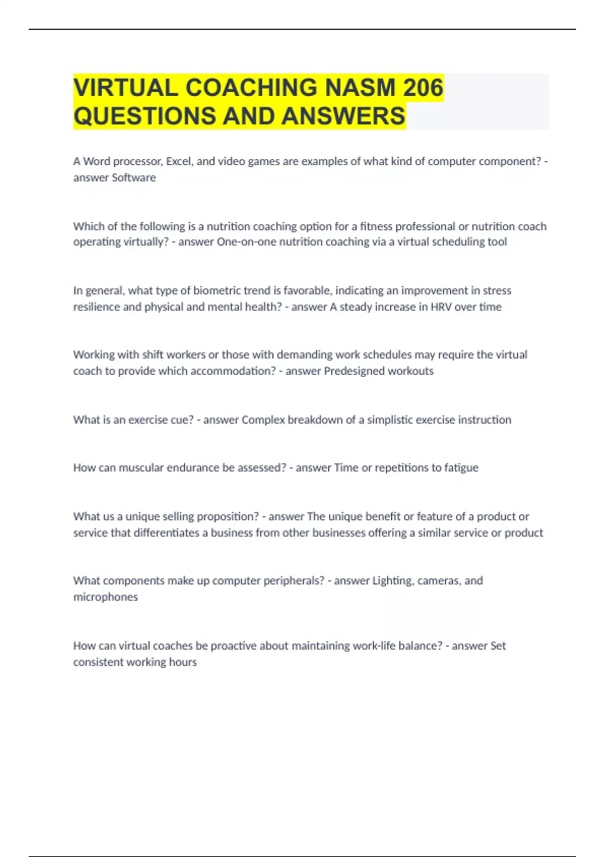 VIRTUAL COACHING NASM |206 QUESTIONS AND ANSWERS