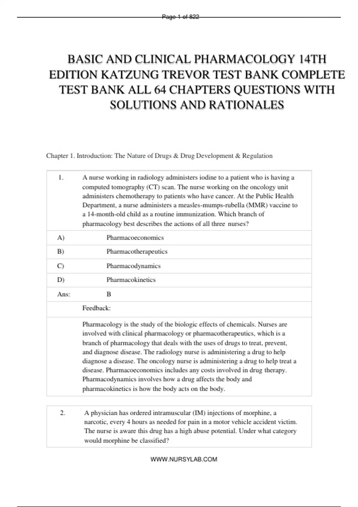TEST BANK FOR BASIC AND CLINICAL PHARMACOLOGY 14TH EDITION KATZUNG TREVOR TEST BANK COMPLETE TEST BANK ALL 64 CHAPTERS QUESTIONS WITH SOLUTIONS AND RATIONALES LATEST UPDATED VERSION