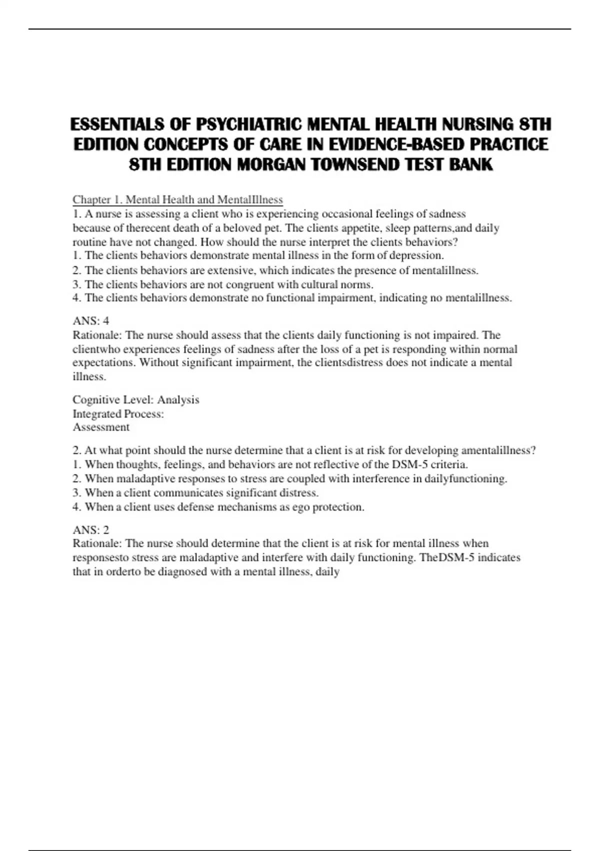 ESSENTIALS OF PSYCHIATRIC MENTAL HEALTH NURSING 8TH EDITION CONCEPTS OF CARE